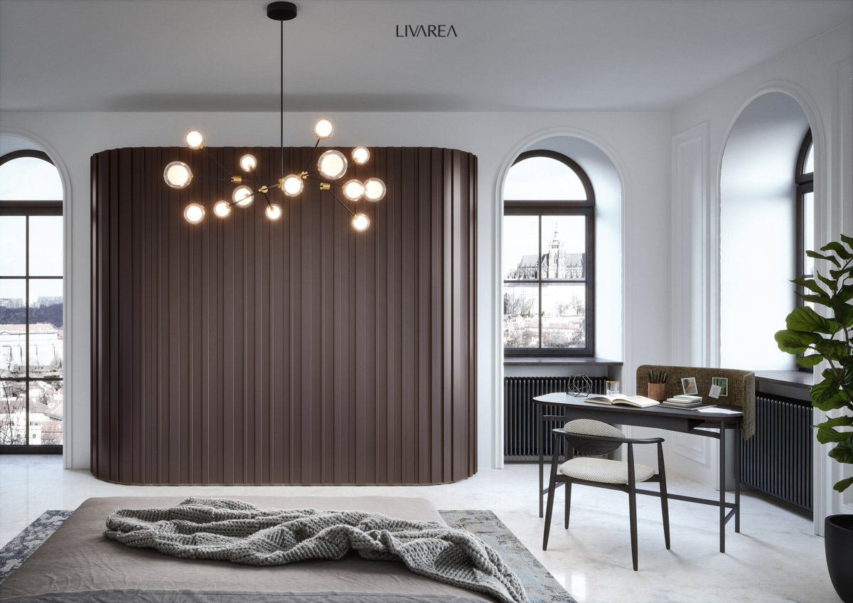 Esempio di successo di armadi a muro con design dei pannelli laterali arrotondati