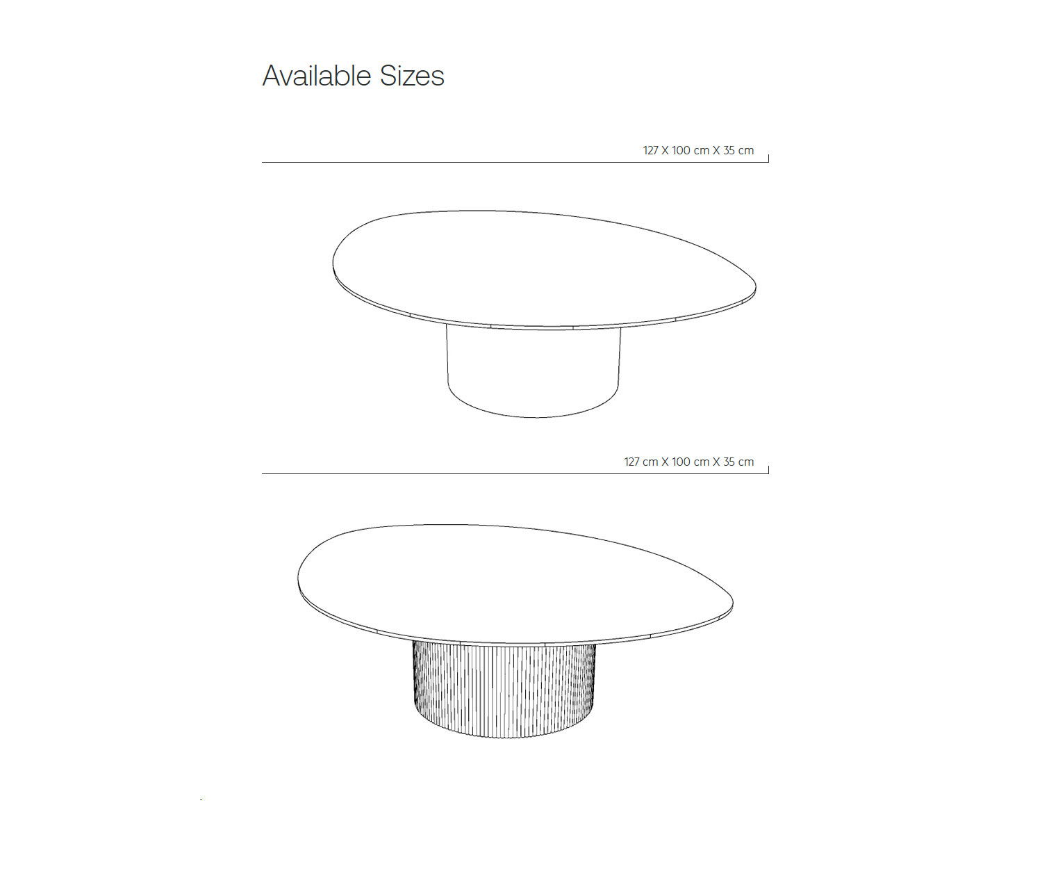 Il tavolino di design al2 dakry 006 è composto da due parti: il piano e la base. Il piano del tavolo è a goccia.