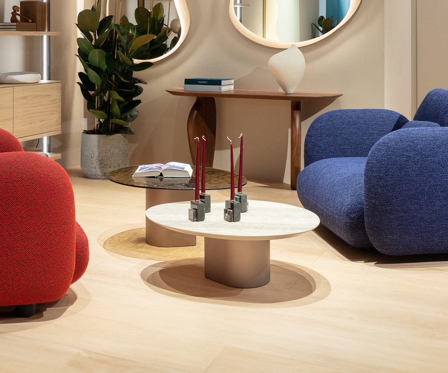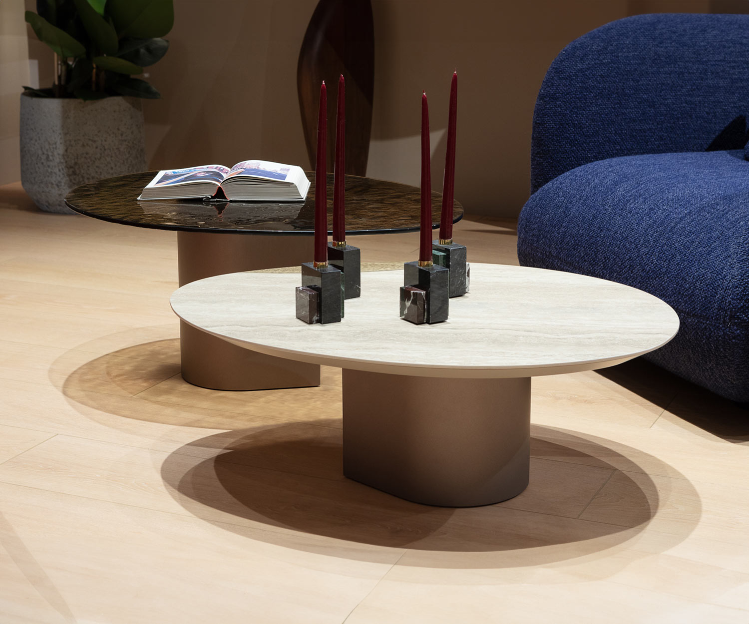 Il tavolino Dakry 006 di al2 colpisce per il suo design insolito che unisce armoniosamente eleganza e giocosità. È caratterizzato dalla base centrale a forma di goccia, che non è solo di grande impatto visivo ma anche funzionale: crea il massimo spazio per le gambe e invita a socializzare.