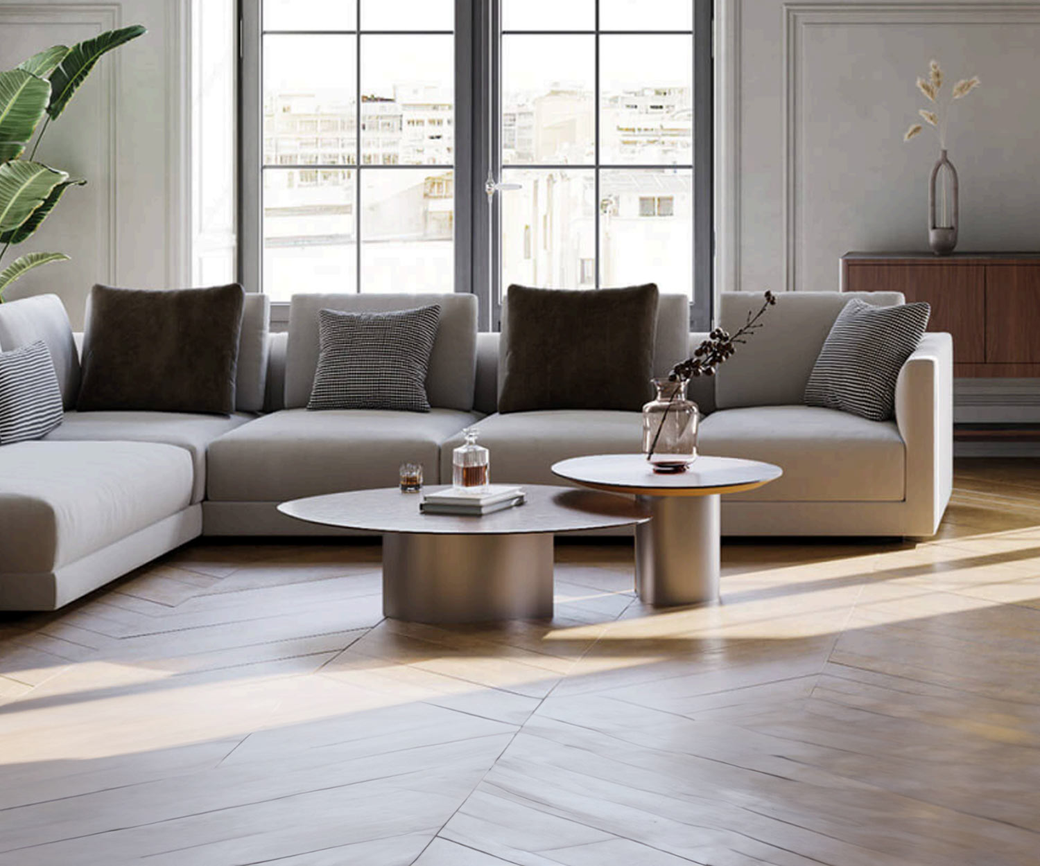 Il piano del tavolo con impiallacciatura in legno del tavolino dakry 006 design di al2 è costituito da un pannello in MDF rifinito in esclusivo noce americano o rovere tinto nero. Il piano in ceramica è disponibile nell'elegante Calacatta Oro o Marquina Black. Il piano del tavolo in vetro è di un elegante color bronzo, leggermente colorato e traslucido. La superficie è testurizzata o ondulata, la cosiddetta finitura "fusion".