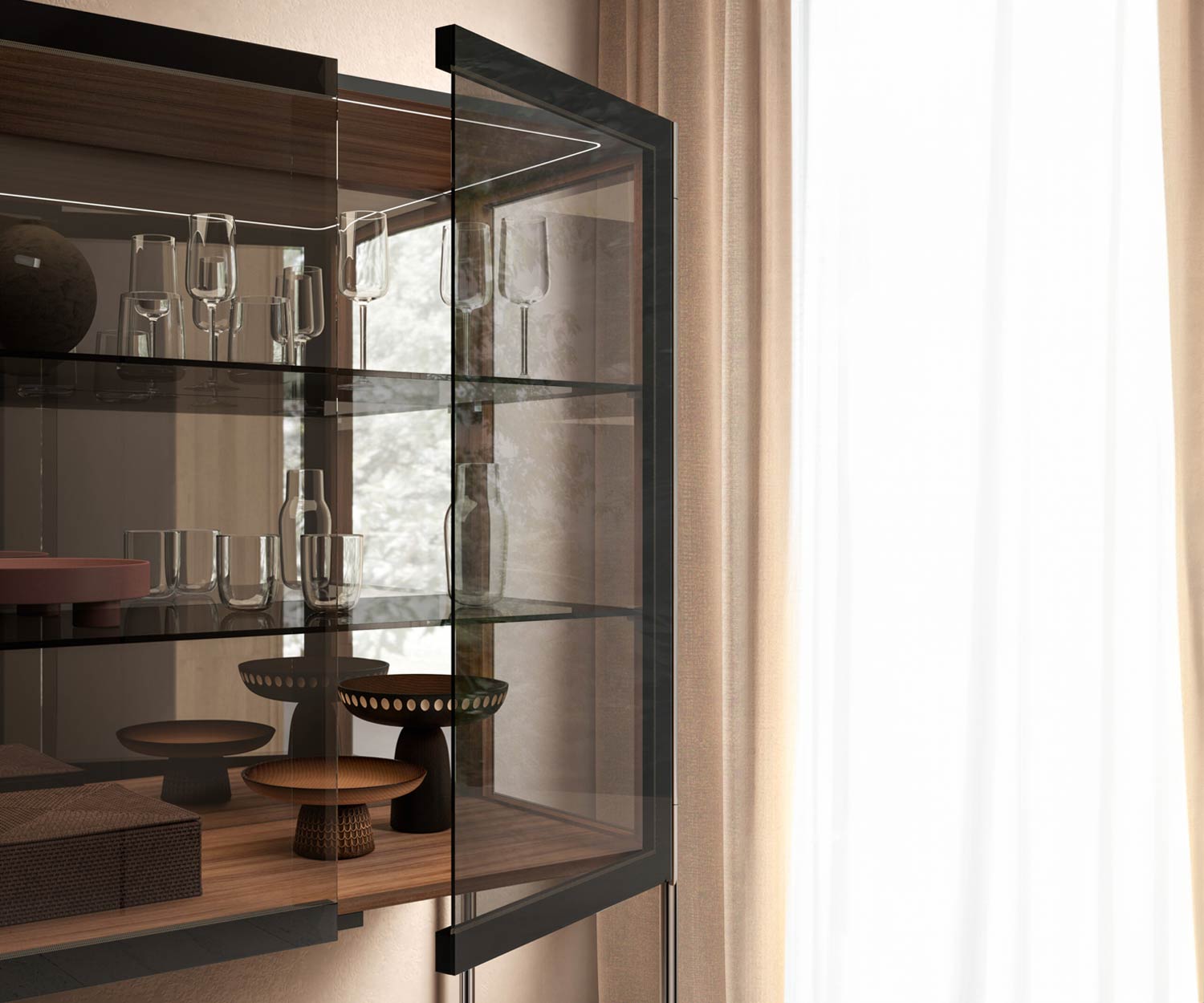 Con la cristalliera Capo d'Opera, i bicchieri da cocktail possono risaltare e brillare grazie all'illuminazione a LED. È il momento di disfare i bicchieri da vino e da Martini e la vostra collezione di whisky!
