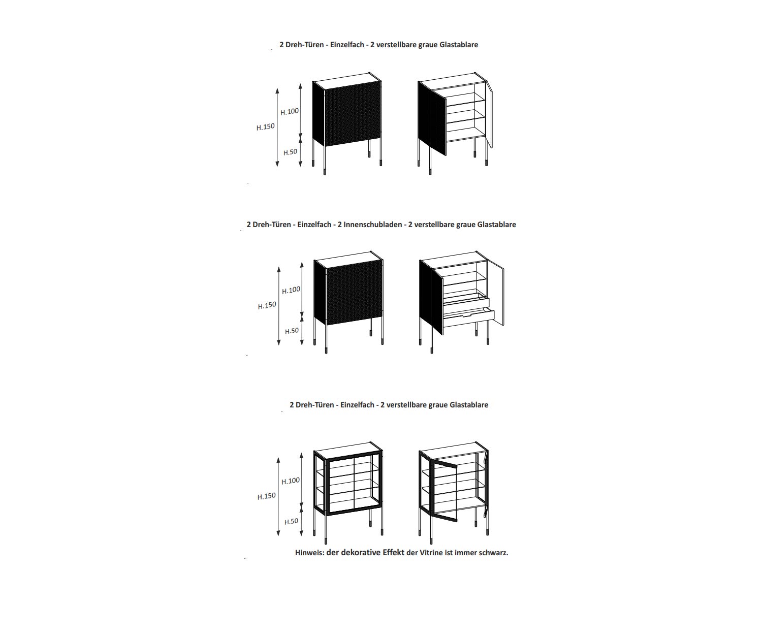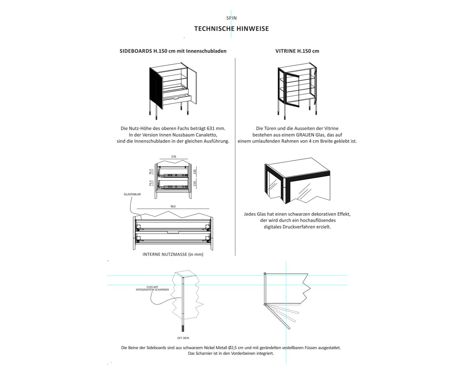 La credenza di design Spin di Capo d 'Opera e il mobile in vetro Spin di Capo d'Opera, disegnati da Alessio Bassan & Silvano Pierdona, attirano l'attenzione per il loro design inconfondibile. Le ante della credenza sono realizzate con un pannello in MDF di alta qualità, mentre i frontali e i fianchi sono costituiti da una stabile anima in alluminio a nido d'ape.