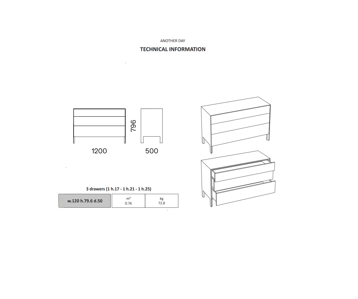 La cassettiera Capo d'Opera Another Day Design è disponibile nelle seguenti dimensioni: