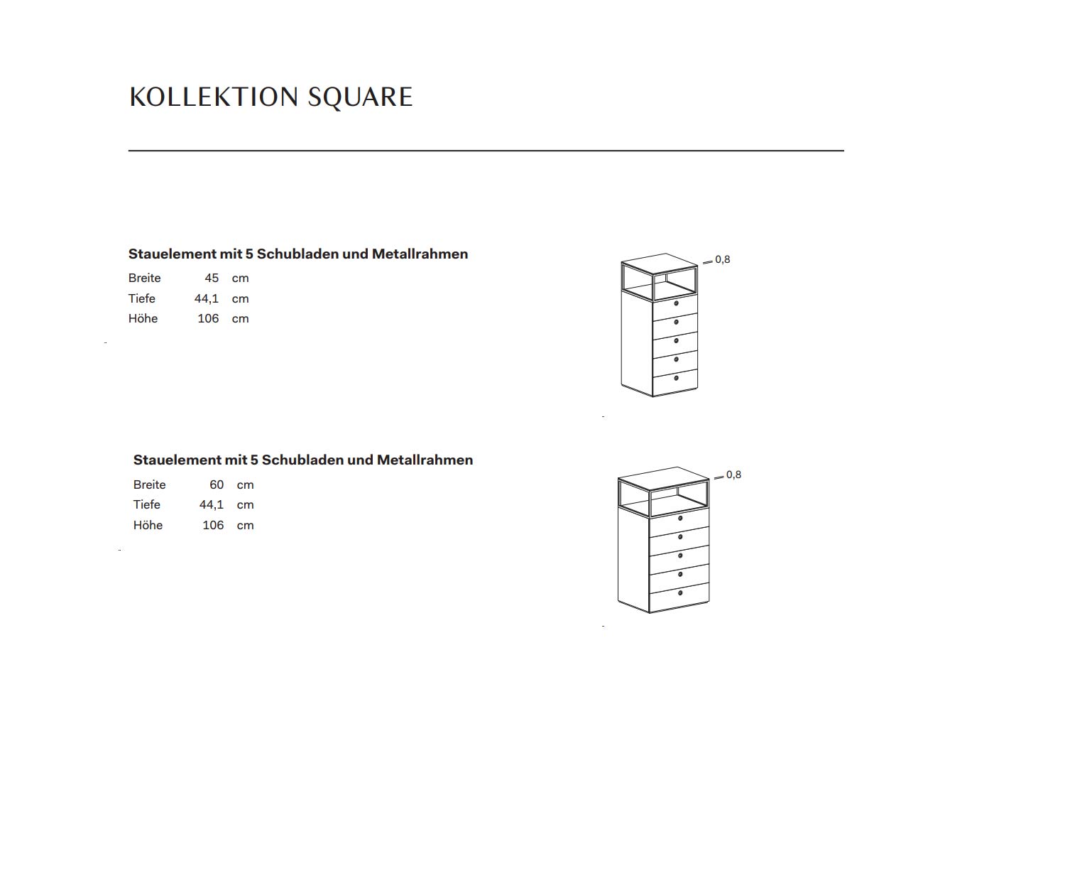 La cassettiera Square è disponibile nelle seguenti dimensioni e versioni: