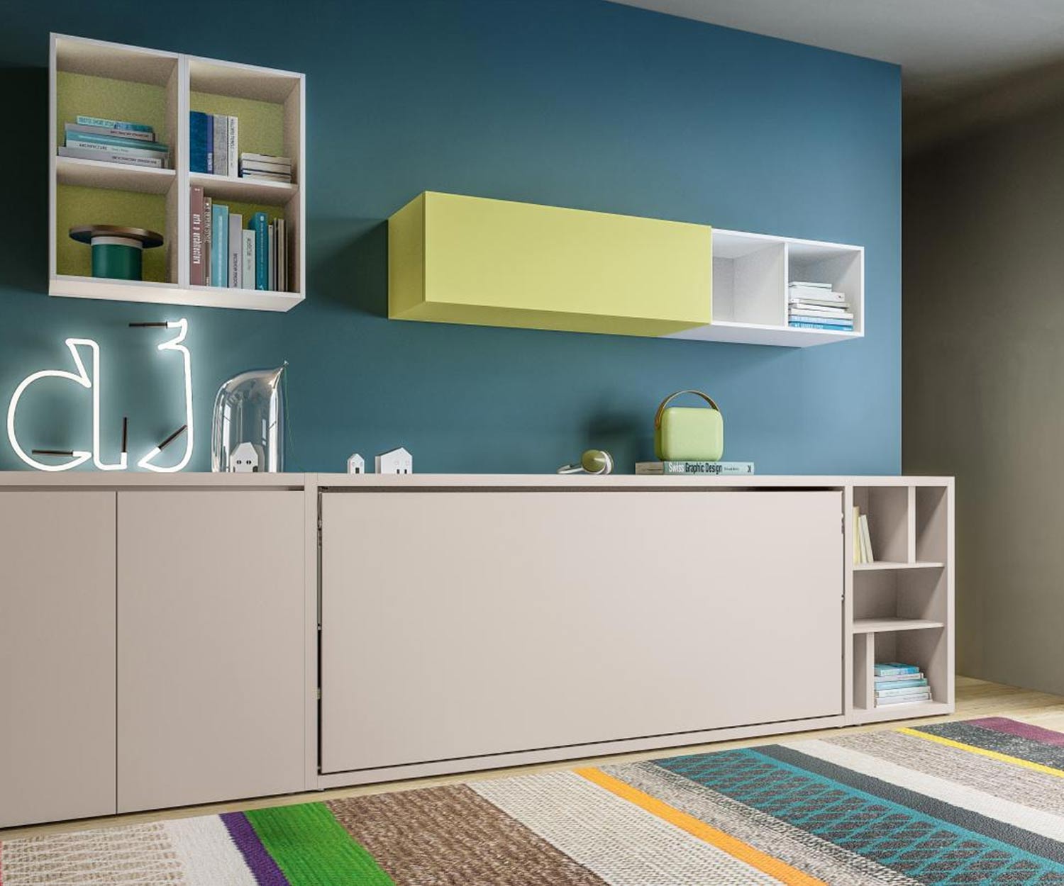 In abbinamento al letto armadio di design Kali 90/120 sono disponibili anche il letto armadio Kali 90/120 con scrivania e il letto a castello Kali Duo.