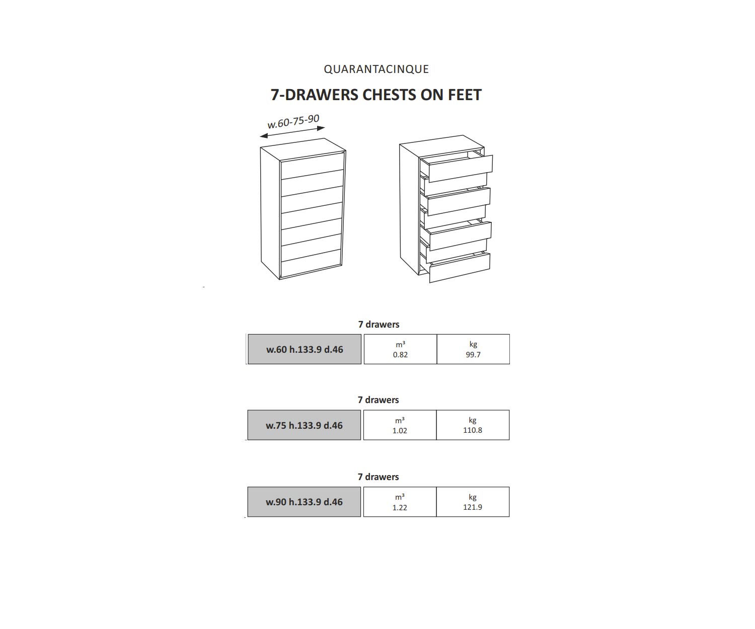 Un particolare punto di forza è ilsistema di apertura a spinta, che non richiede maniglie e sottolinea il design minimalista. Con un ampio spazio per riporre i vestiti, la cassettiera è funzionale ed elegante, ideale per le camere da letto che apprezzano le linee pulite e i materiali pregiati.Disponibile in diverse dimensioni, la collezione Quarantacinque si adatta in modo flessibile alle vostre esigenze, sia come cassettiera, comodino o cassettiera alta.