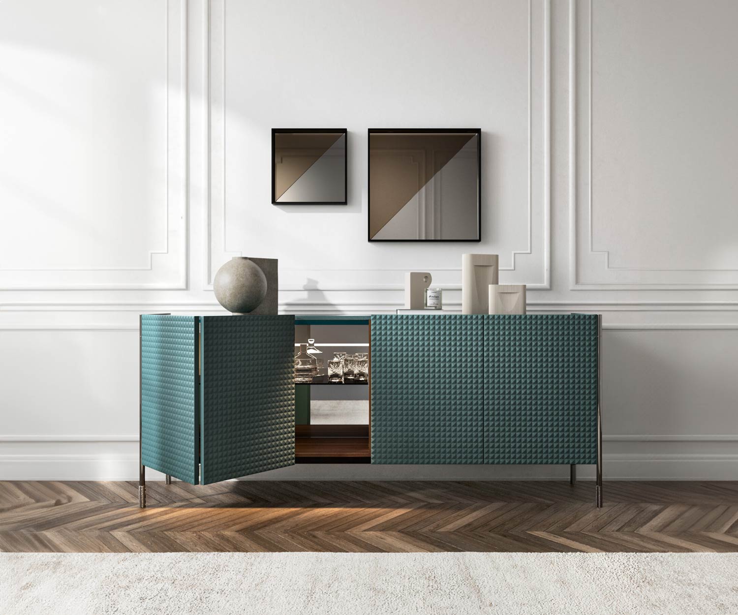 Le 4 ante della credenza Capo d'Opera Spin sono costituite da 2 ante a ribalta. Novamobili