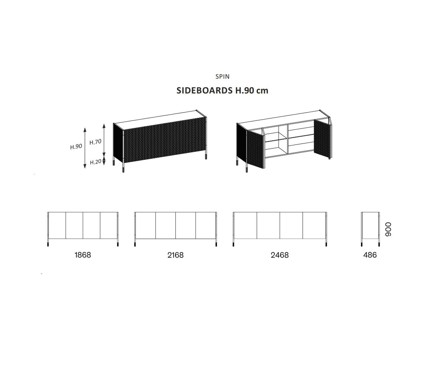 La credenza Reverse è disponibile nelle seguenti dimensioni: