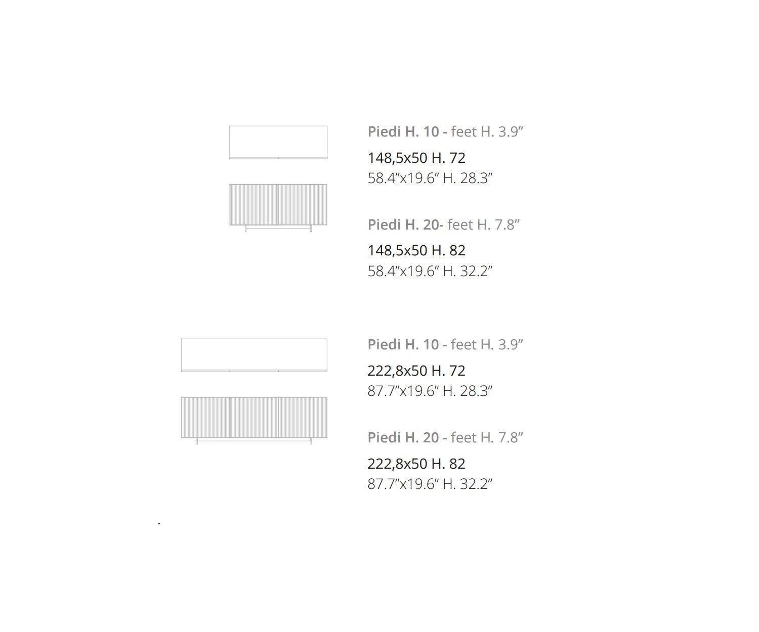 L 222,8 cm / A 82 cm / P 50 cm / Piedi H 20 cm (con 3 ante)