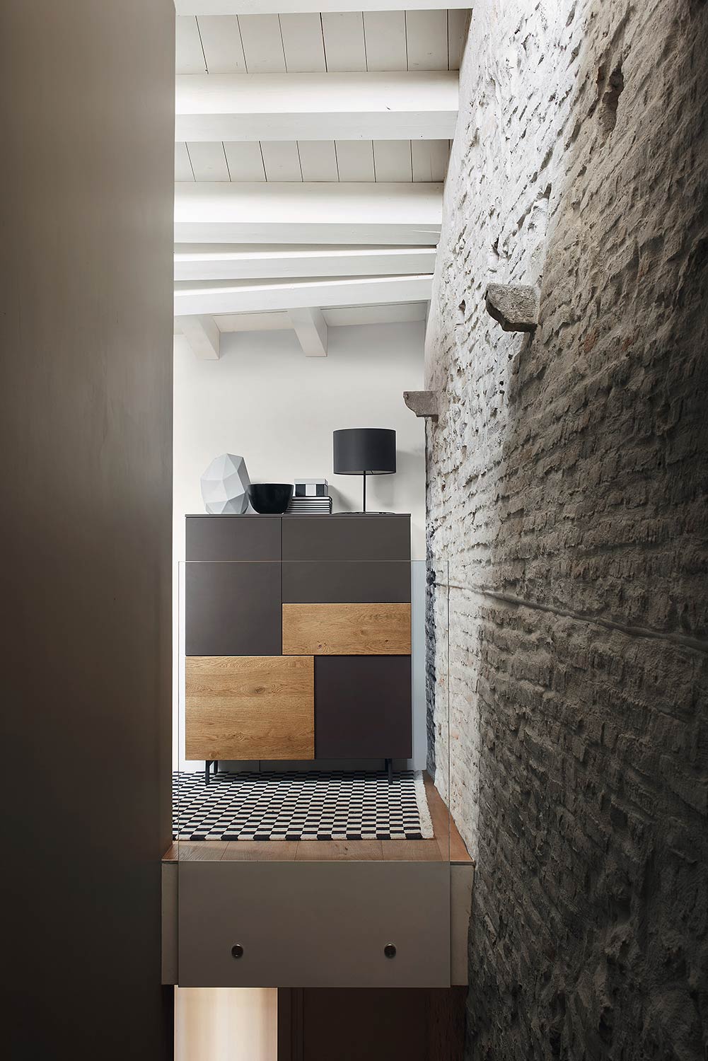 L'armadio dal design moderno italiano con diversi frontali delle ante farà sicuramente colpo in qualsiasi salotto. I frontali in legno di 35 mm di spessore creano un contrasto armonioso tra le superfici laccate e impiallacciate.