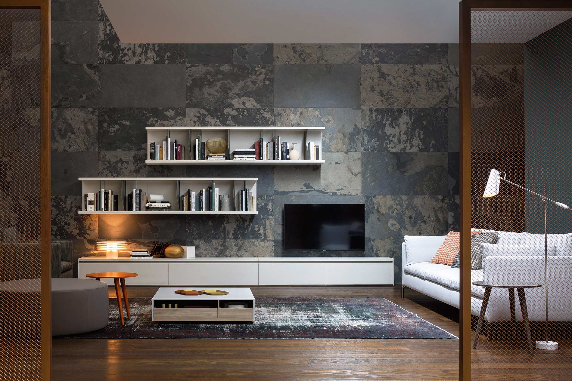 Soggiorno di lusso con TV lowboard di design