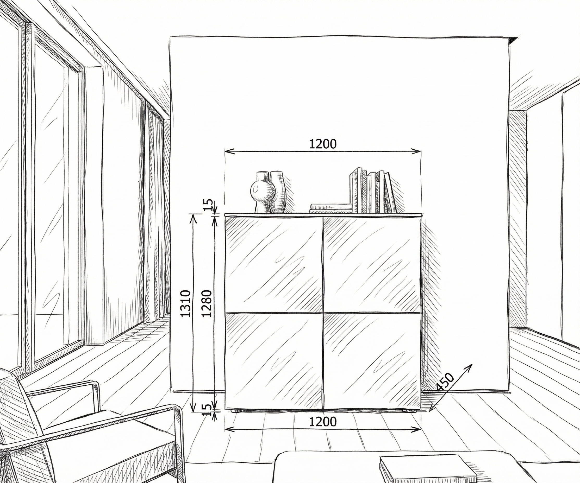 Das Livitalia Design Highboard Four besticht durch minimalistische Eleganz und eine klare Formensprache, die sich nahtlos in moderne Wohnlandschaften einfügt.