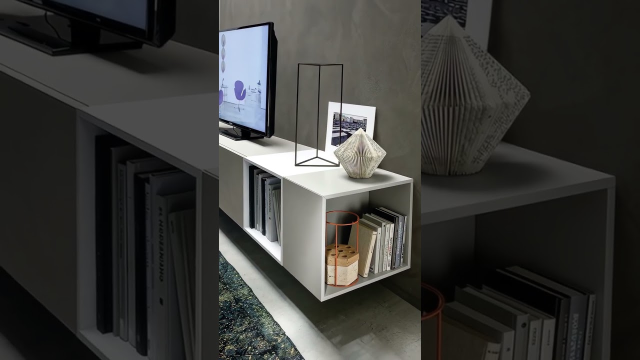 Moderno pensile di design Livitalia C07 dall'Italia. Composto da una credenza larga 390 cm con elementi aperti per libri e decorazioni e da un grande pensile chiuso con ampio spazio per libri, bicchieri o DVD. La personalizzazione è possibile su richiesta. Lavagna con anta a battente per dispositivi elettronici nella parte inferiore. Con guide per cavi per una migliore gestione dei cavi su richiesta.