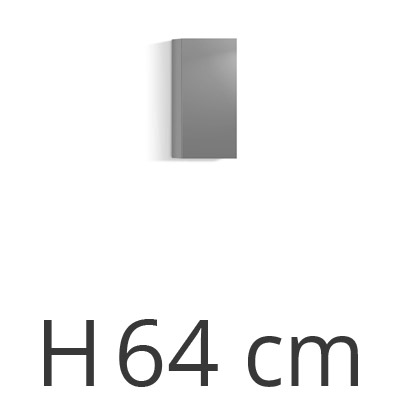 Il pensile verticale di design Livitalia viene prodotto solo su ordinazione ed è disponibile in 4 altezze e 3 larghezze. L'anta a battente del pensile stretto è priva di maniglie e può essere aperta e chiusa con una leggera pressione sul frontale.