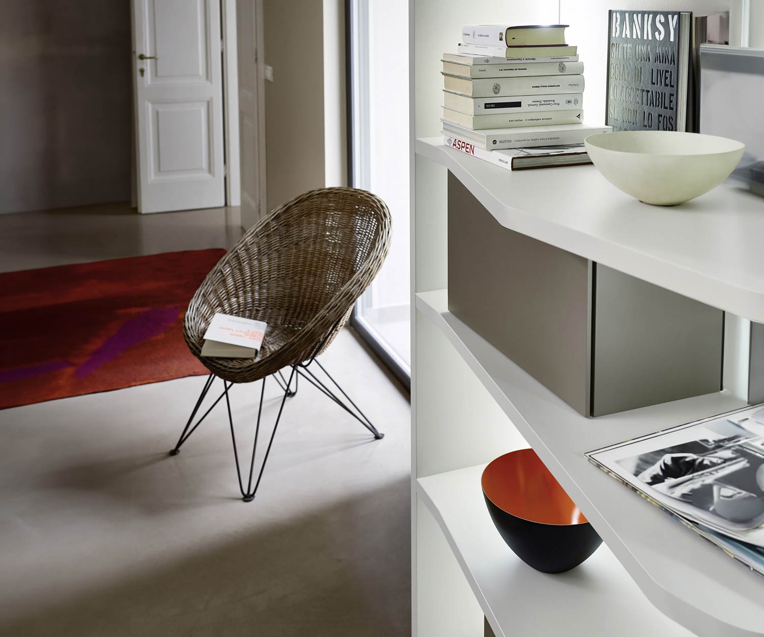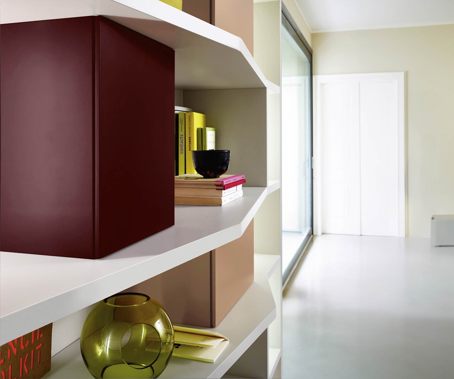Lo scaffale è realizzato in MDF ed è laccato o impiallacciato, a seconda della versione.