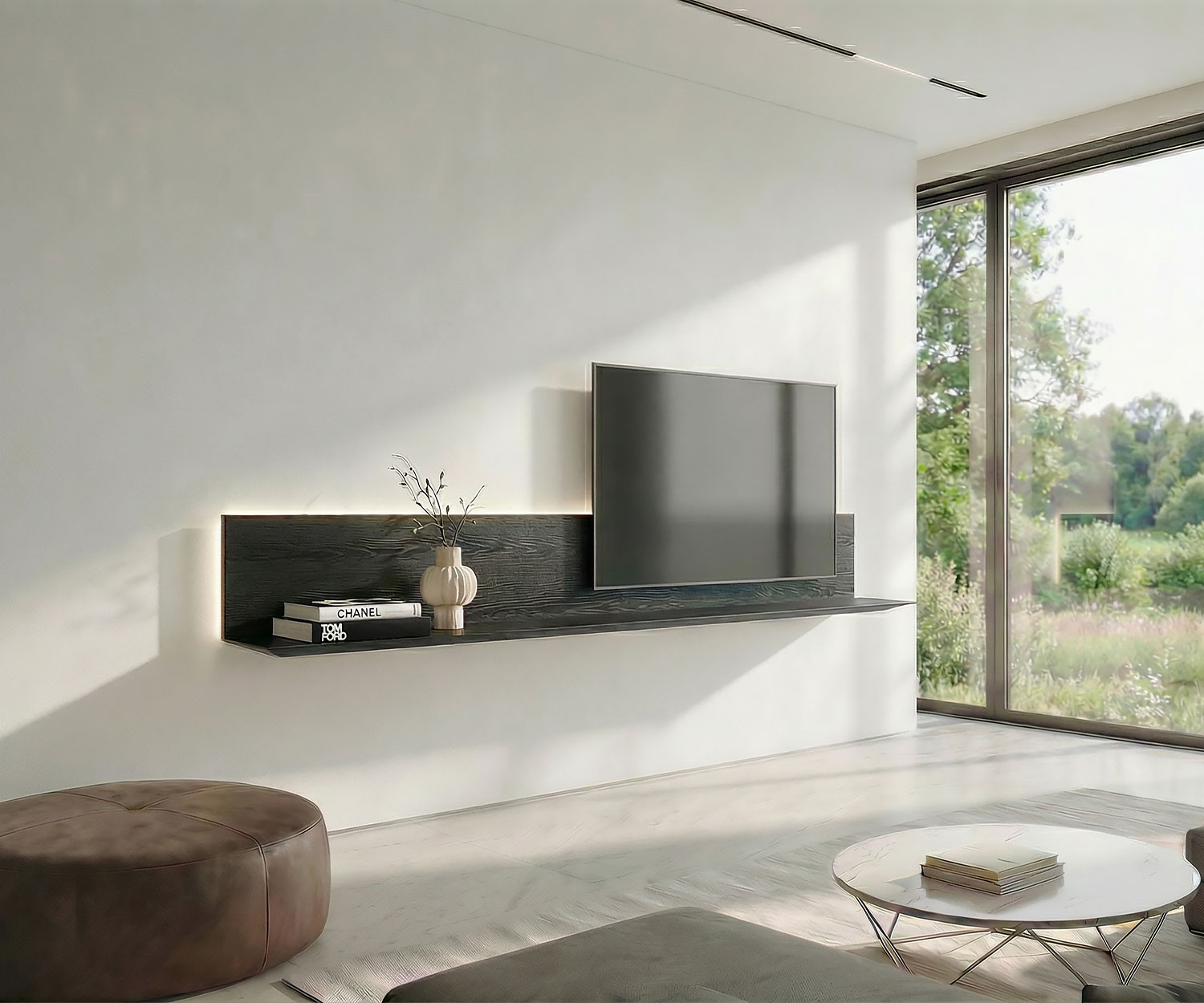 Verleihen Sie Ihrem Wohnzimmer einen Hauch von minimalistischer Eleganz mit dem hängenden Livitalia TV Wandboard Super. Dieses freistehende Design-Highlight vereint italienische Handwerkskunst mit modernster Funktionalität und lässt Ihren TV formvollendet an der Wand schweben.
