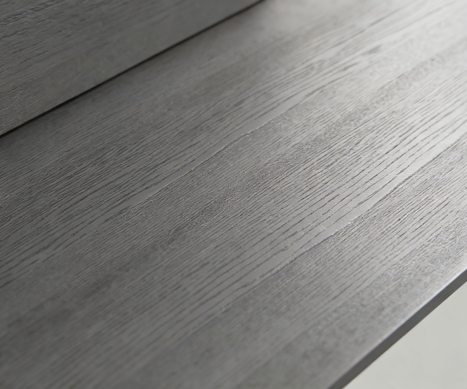 Die sichtbaren Oberflächen von Rückwand und Bank sind mit hochwertigem, lackiertem Holzfurnier in edler Eiche Carbone Schwarz beschichtet. Die Kanten und nicht sichtbaren Flächen sind polyesterbeschichtet und anschließend matt Dunkelgrau lackiert.