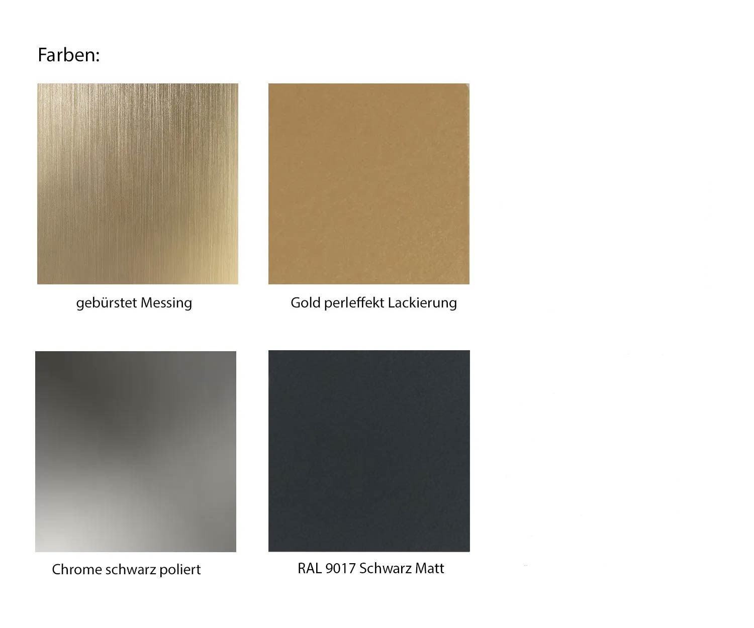 Il tavolino Clip di Marelli Design è disponibile nei colori nero opaco RAL 9017, bianco opaco RAL 9016 o nei colori cromo nero lucido e cromo argento lucido, ottone spazzolato e laccato effetto perla oro.