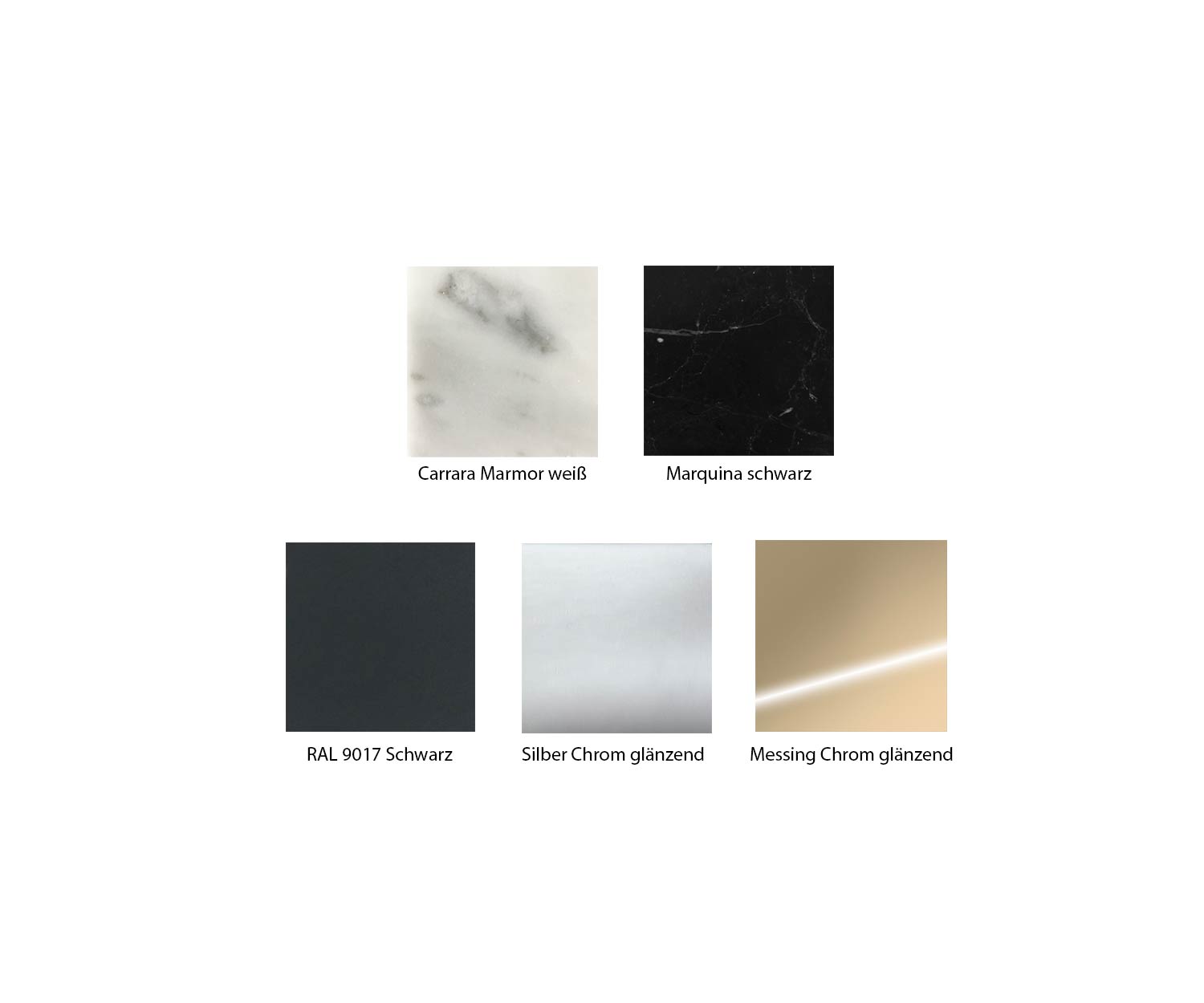 Il piano in marmo del tavolino Thor è disponibile in 3 colori: marmo bianco, nero o oro. La base in metallo è disponibile in nero, argento o ottone. Offriamo due diverse finiture per il vostro tavolo in marmo: Una è un'impregnazione X-Stone e poi un rivestimento in poliestere.