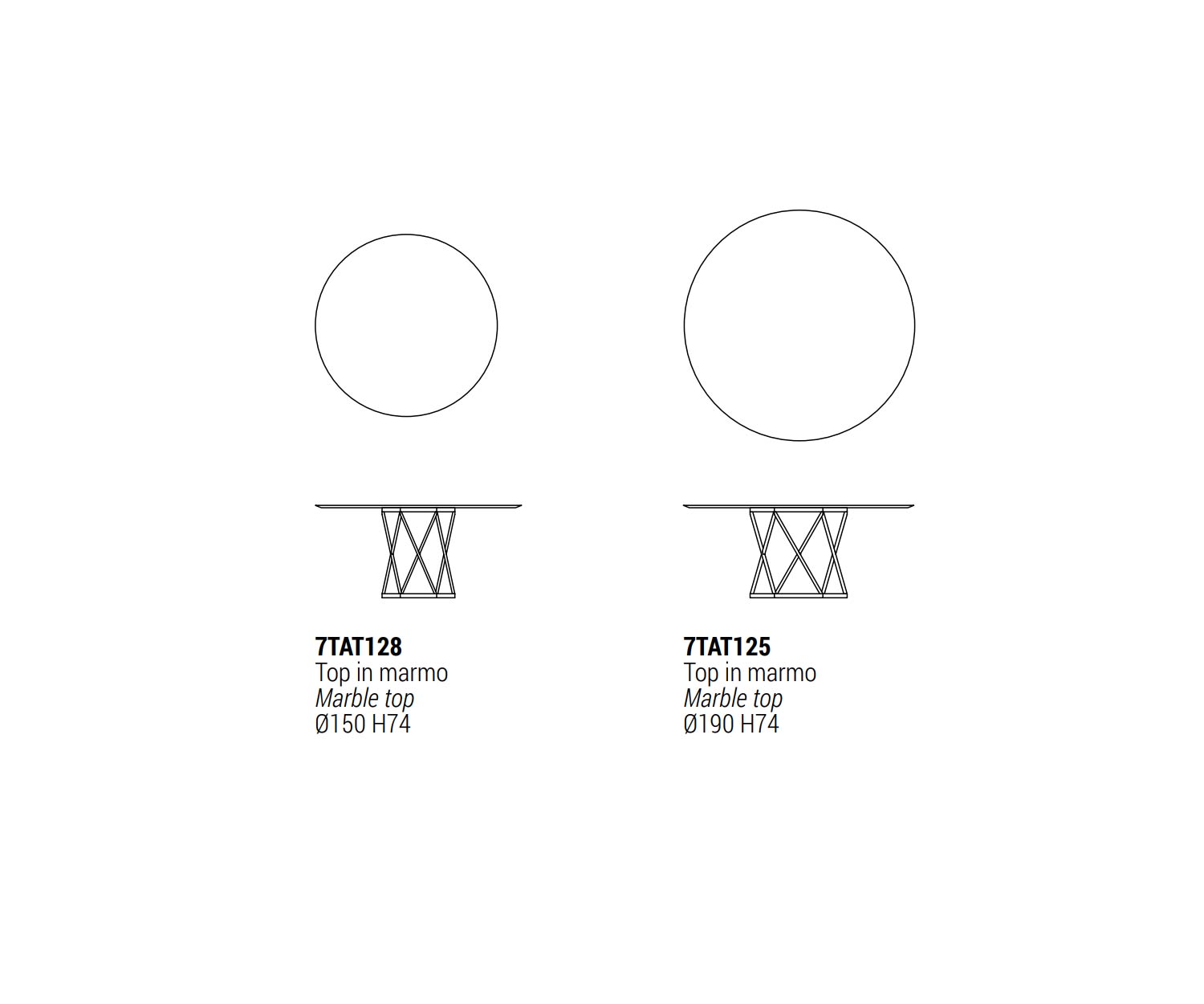Il tavolo da pranzo di design in marmo Tatlin di Marelli è disponibile nelle seguenti larghezze:
