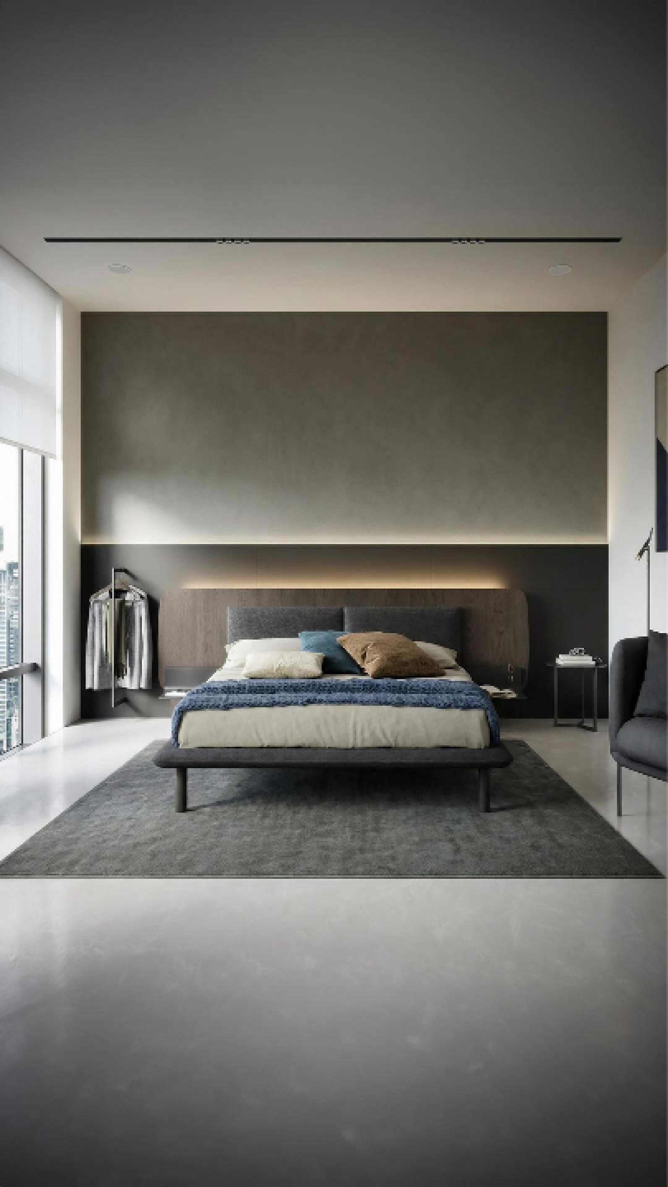 Il bordo del letto imbottito completa l'aspetto generale e crea un'atmosfera accogliente nella camera da letto. Questa combinazione di funzionalità ed estetica rende il letto un lussuoso richiamo visivo.