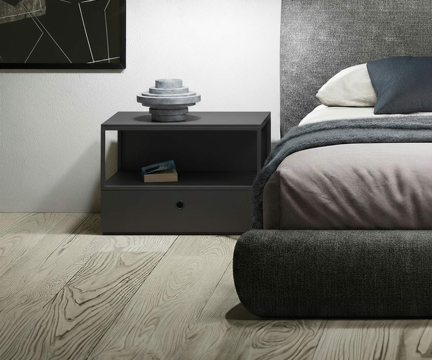 Der Korpus der Novamobili Nachtkommode Square ist erhältlich in 5 modernen Matt Farben: Matt Schwarz (ähnlich RAL9017), Weiß (ähnlich RAL9016), Hellgrau (ähnlich RAL7035), Dunkelgrau (ähnlich RAL7022) oder Beige (ähnlich RAL1019).