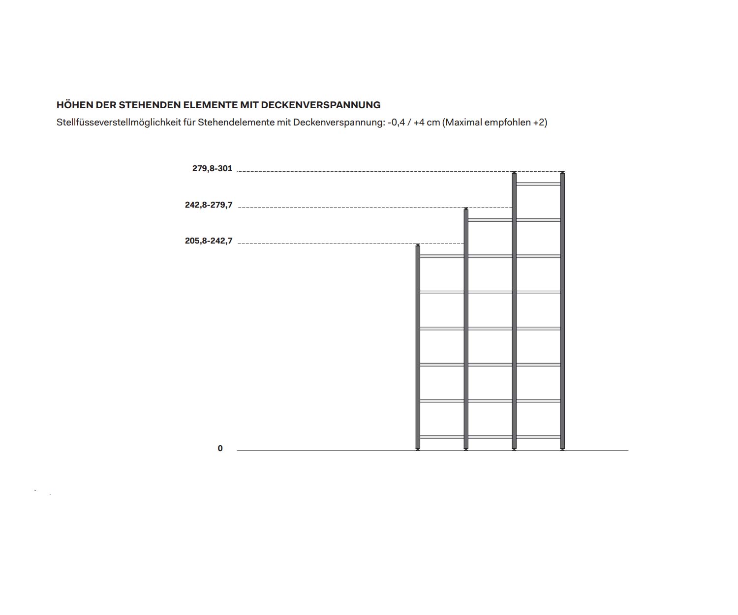 Sono possibili le seguenti altezze: 93,7 - 132,7 - 171,7 - 210,7 - 249,7 - 288,7 cm