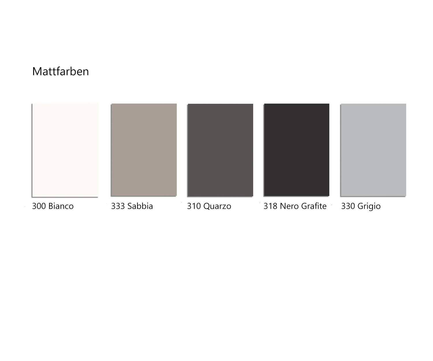 Lo scaffale è disponibile in 5 colori opachi e 2 finiture di legno (olmo scuro, rovere bianco). I colori possono essere combinati su richiesta. Non solo i ripiani e le scatole possono essere colorati, ma anche il telaio.