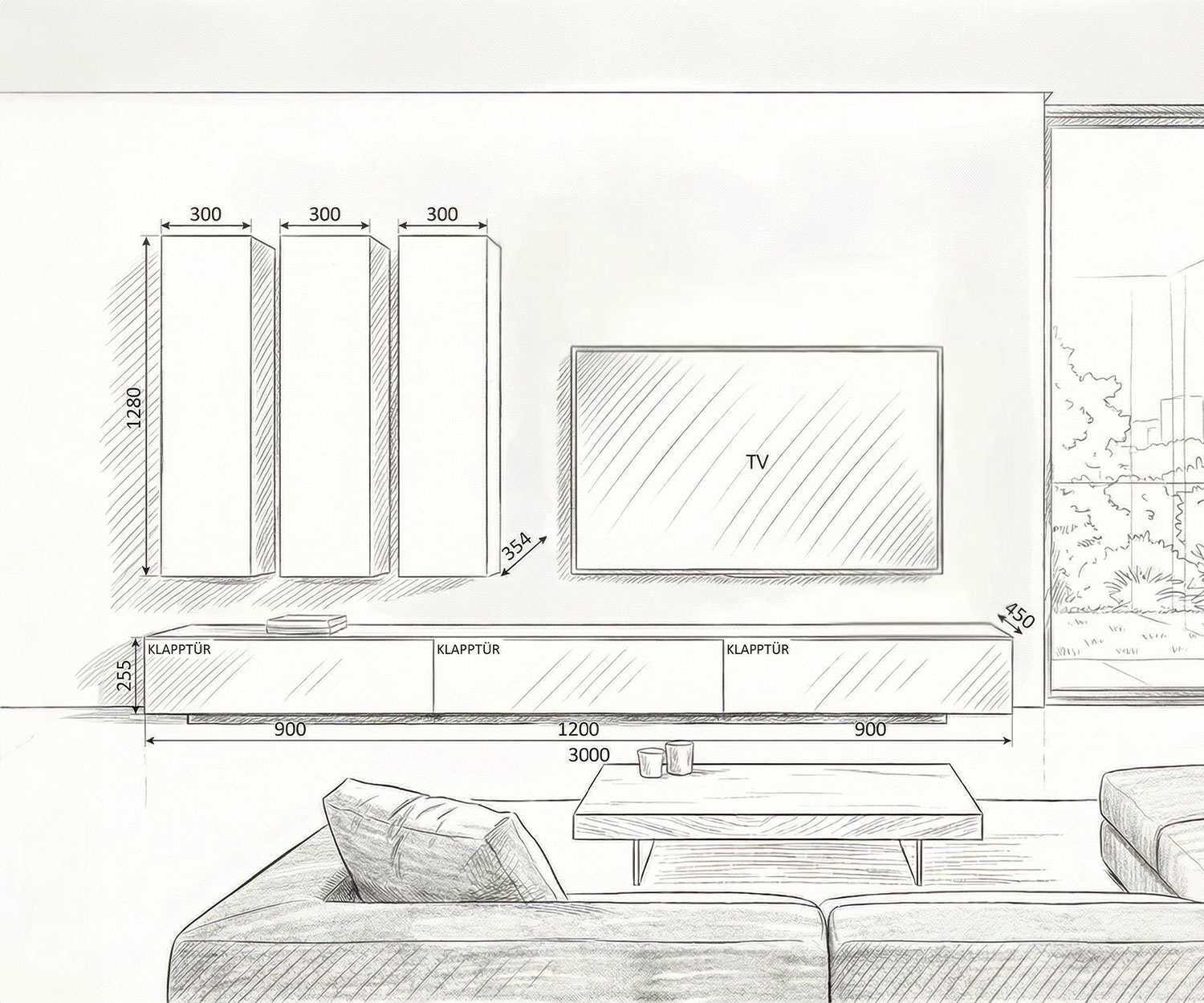Il vostro nuovo pensile da sogno può essere personalizzato in base alle vostre esigenze spaziali individuali. Per garantirvi l'arredamento perfetto del soggiorno, saremo lieti di creare per voi una visualizzazione 3D personalizzata.