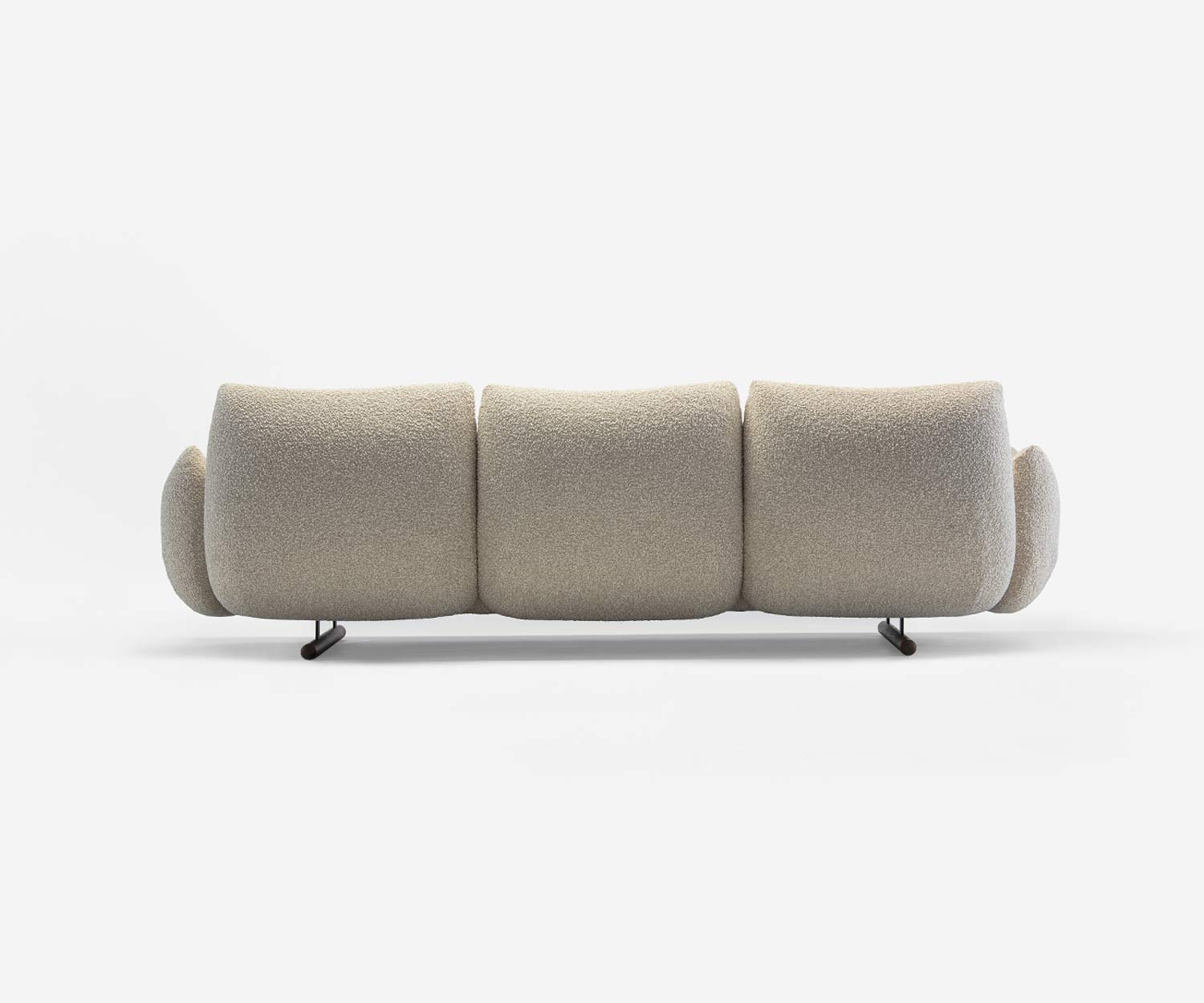 Lapoltrona e il divano bouclé Buffa vanno oltre i mobili imbottiti convenzionali, offrendo non solo una presenza funzionale ma anche artistica nella stanza. Le linee morbide e arrotondate e la forma giocosa e vaporosa ricordano l'allegra leggerezza dell'opera buffa italiana e aggiungono un tocco di umorismo al look lussuoso del divano.Materiali: