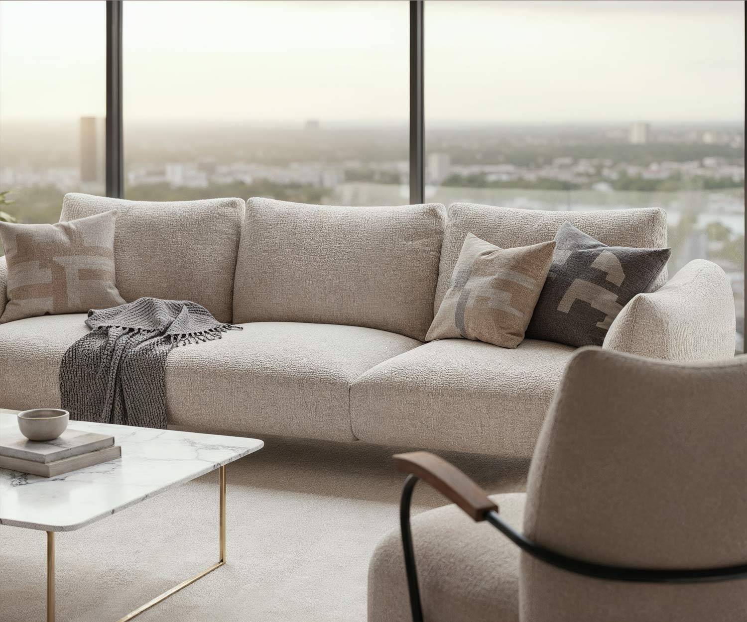 Nach einem langen Arbeitstag gibt es nichts Schöneres, als sich in die weiche Umarmung dieses Sofas fallen zu lassen.