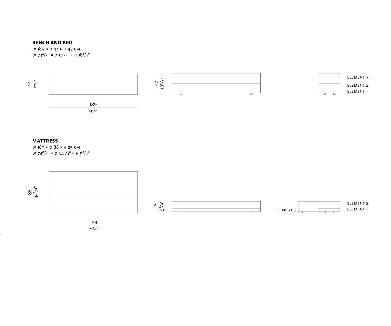 Il divano letto Bavul è disponibile nelle seguenti dimensioni: