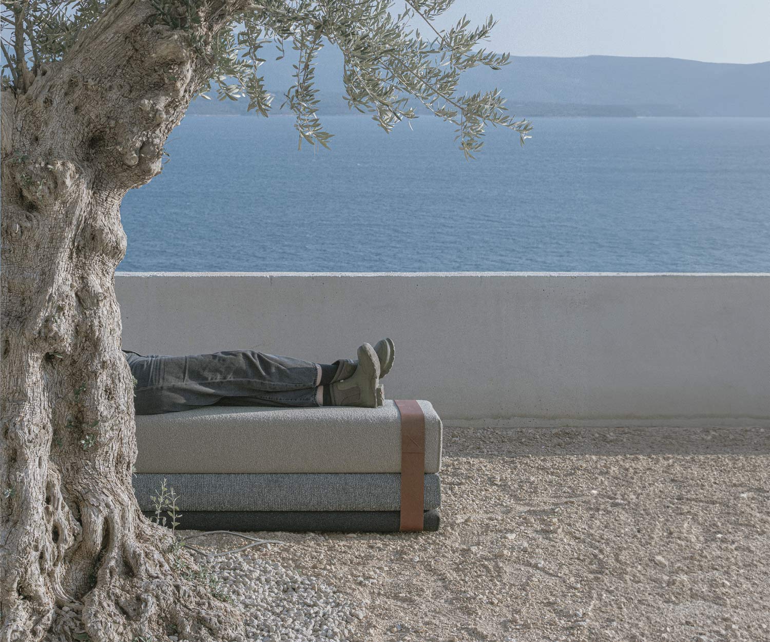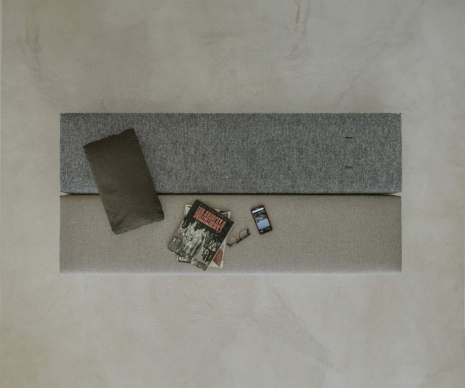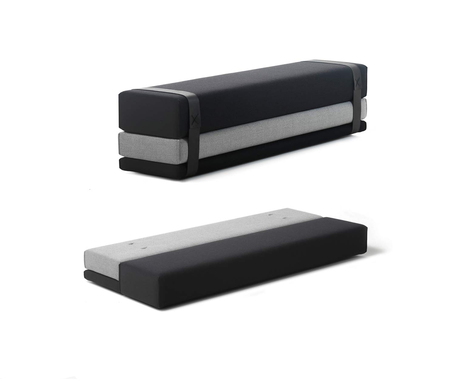 Le sue dimensioni generose rendono la panca reclinabile Bavul particolarmente adatta alla casa moderna o ai progetti di ospitalità minimalista in cui lo spazio è limitato. Un mobile pratico ed elegante che convince sia come seduta che come letto o materasso aggiuntivo per gli ospiti.