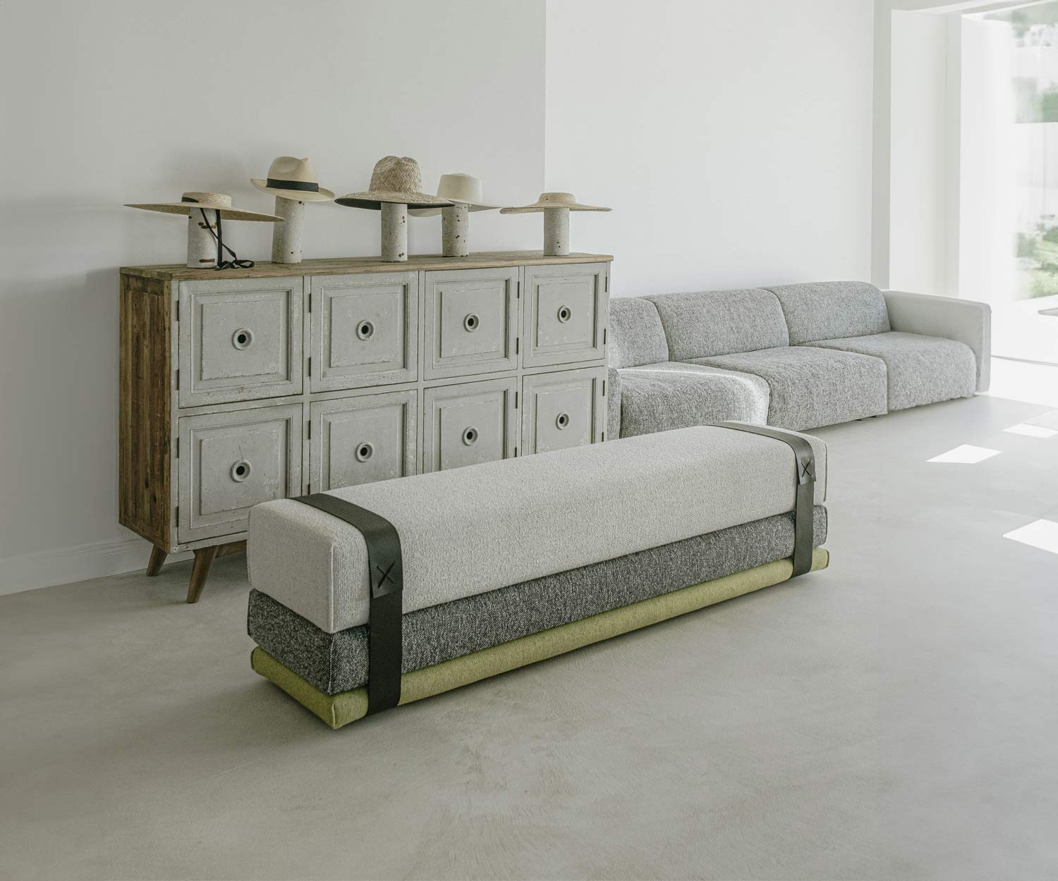 Prostoria La panca imbottita Bavul unisce funzionalità ed estetica in modo unico. Ispirata alla tradizionale cassapanca dalmata, la panca può essere trasformata senza sforzo in un comodo letto. Perfetta per il soggiorno, la sala da pranzo o il corridoio, si adatta in modo flessibile alle diverse esigenze.