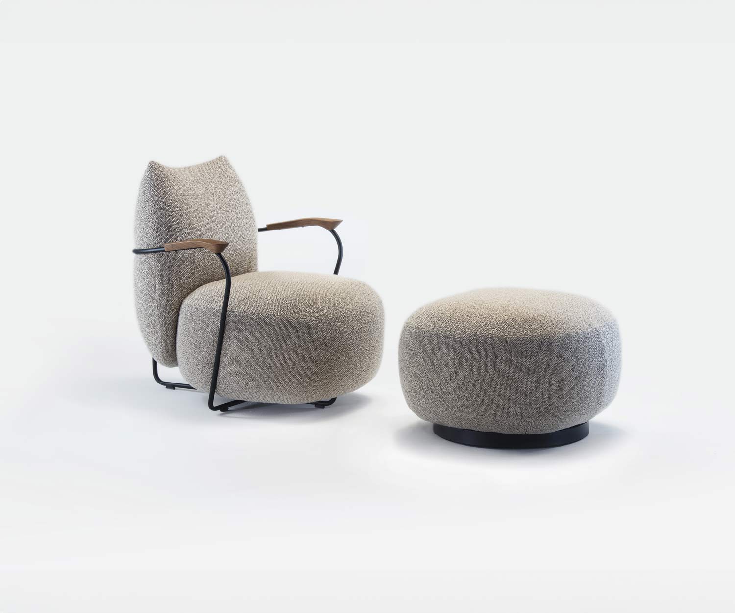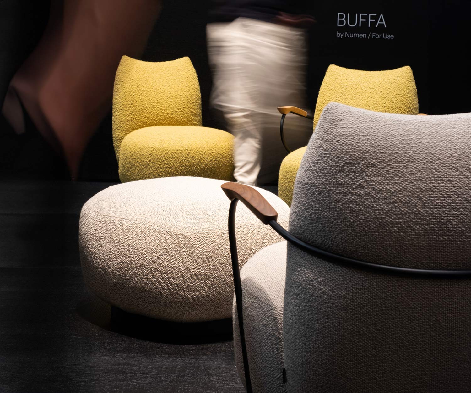 La poltrona Buffa unisce comfort, stile e lusso in una forma straordinaria: un vero capolavoro per ogni casa.Il divano Buffa in bouclé si abbina alla poltrona
