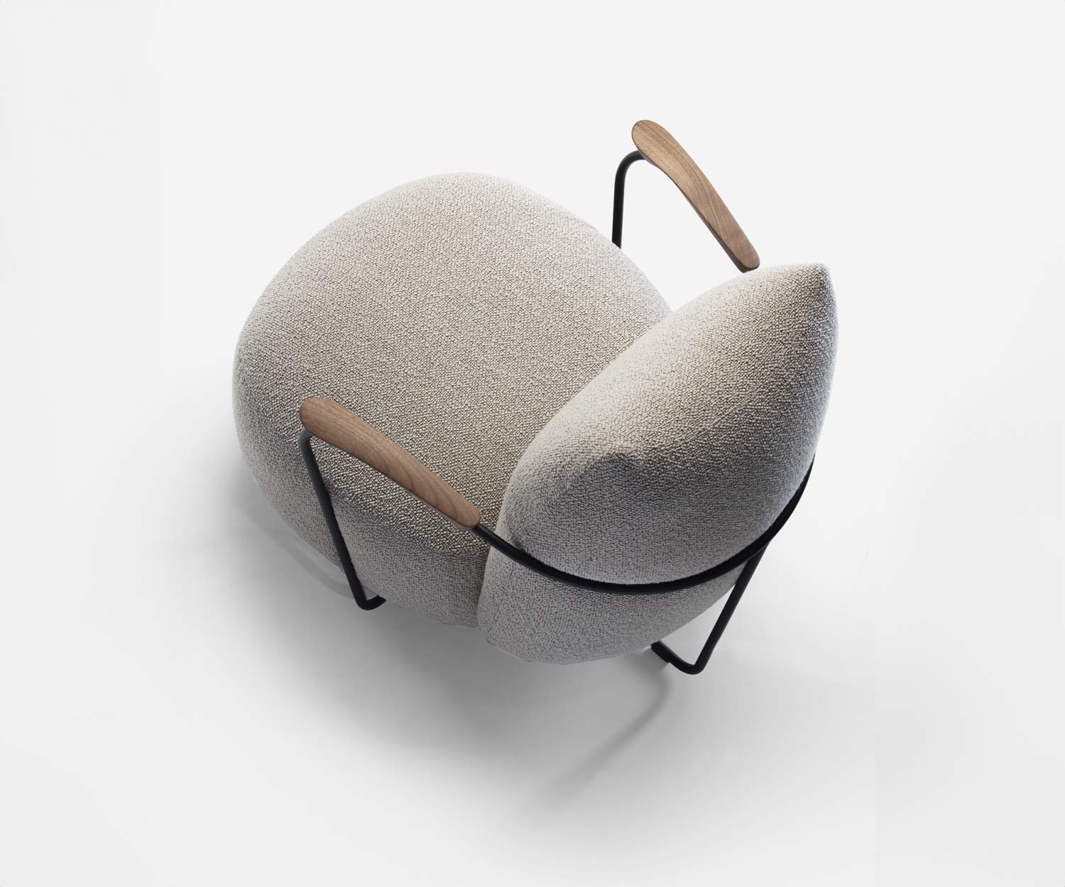 Prostoria La poltrona bouclé Buffa non è solo un mobile, ma un'opera d'arte scultorea che crea un'atmosfera di lusso e tranquillità in qualsiasi ambiente. Le sue curve giocose e cedevoli e la sua forma morbida offrono un rifugio ideale per rilassarsi e fare un respiro profondo. Allo stesso tempo, conferisce all'ambiente una leggerezza moderna che si adatta sia a soggiorni eleganti che a uffici di classe.