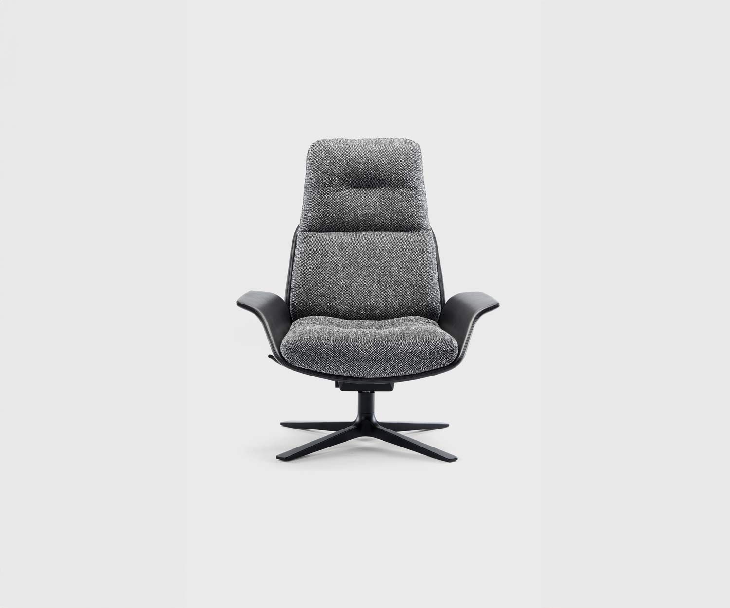 Questa poltrona ridefinisce i confini tra spazio pubblico e privato. Con il suomeccanismo girevole e la struttura orientabile , la poltrona Rei non solo offre un eccellente comfort di seduta, ma anche la massima libertà di movimento, perfetta per gli spazi moderni e multifunzionali. In combinazione con lo sgabello abbinato, la poltrona Rei si integra perfettamente in qualsiasi ambiente. Perfetto per un elevato comfort di seduta con poggiapiedi.Materiali e colori: