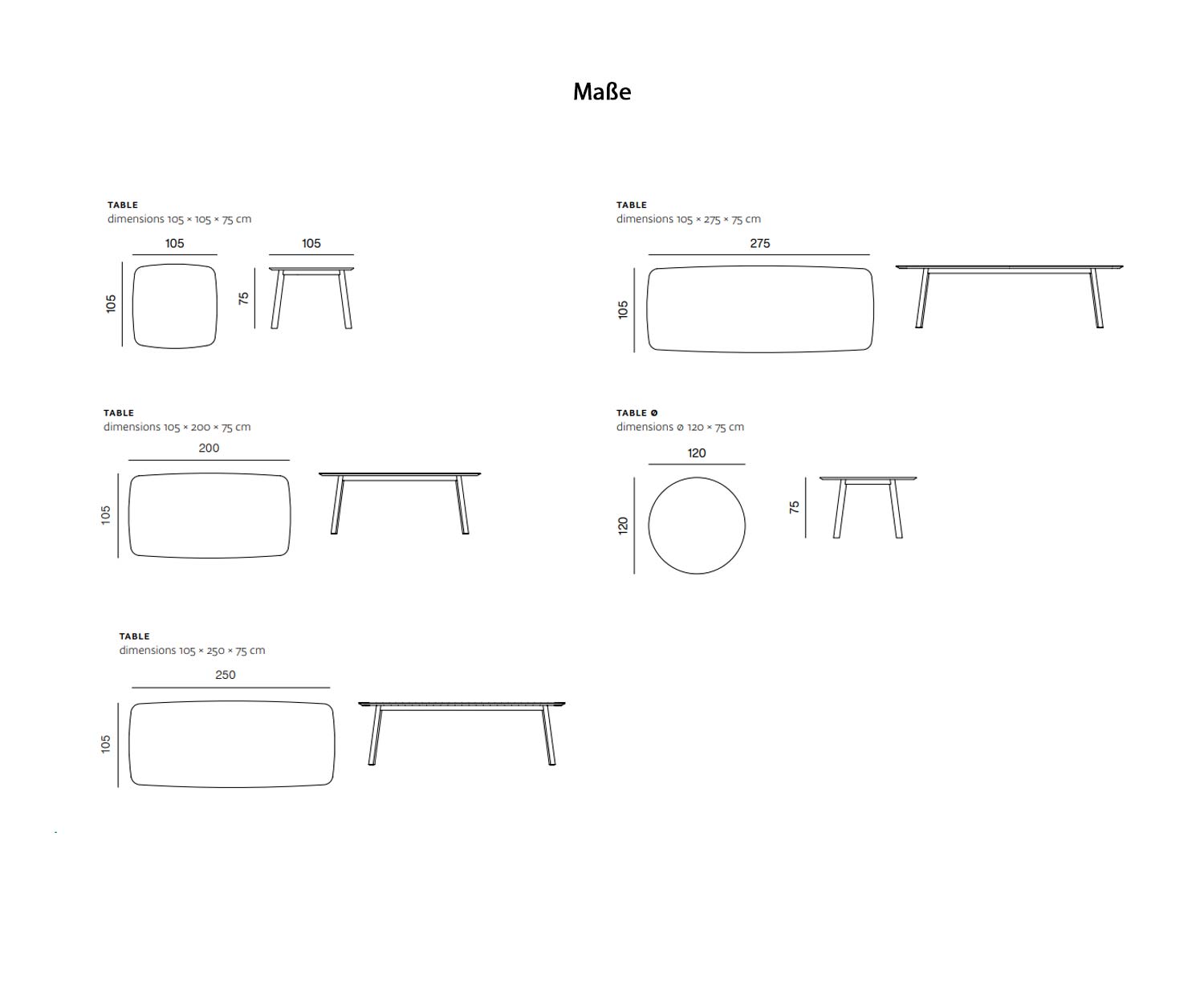Prostoria Il tavolo da pranzo Rhomb è disponibile nelle seguenti dimensioni: