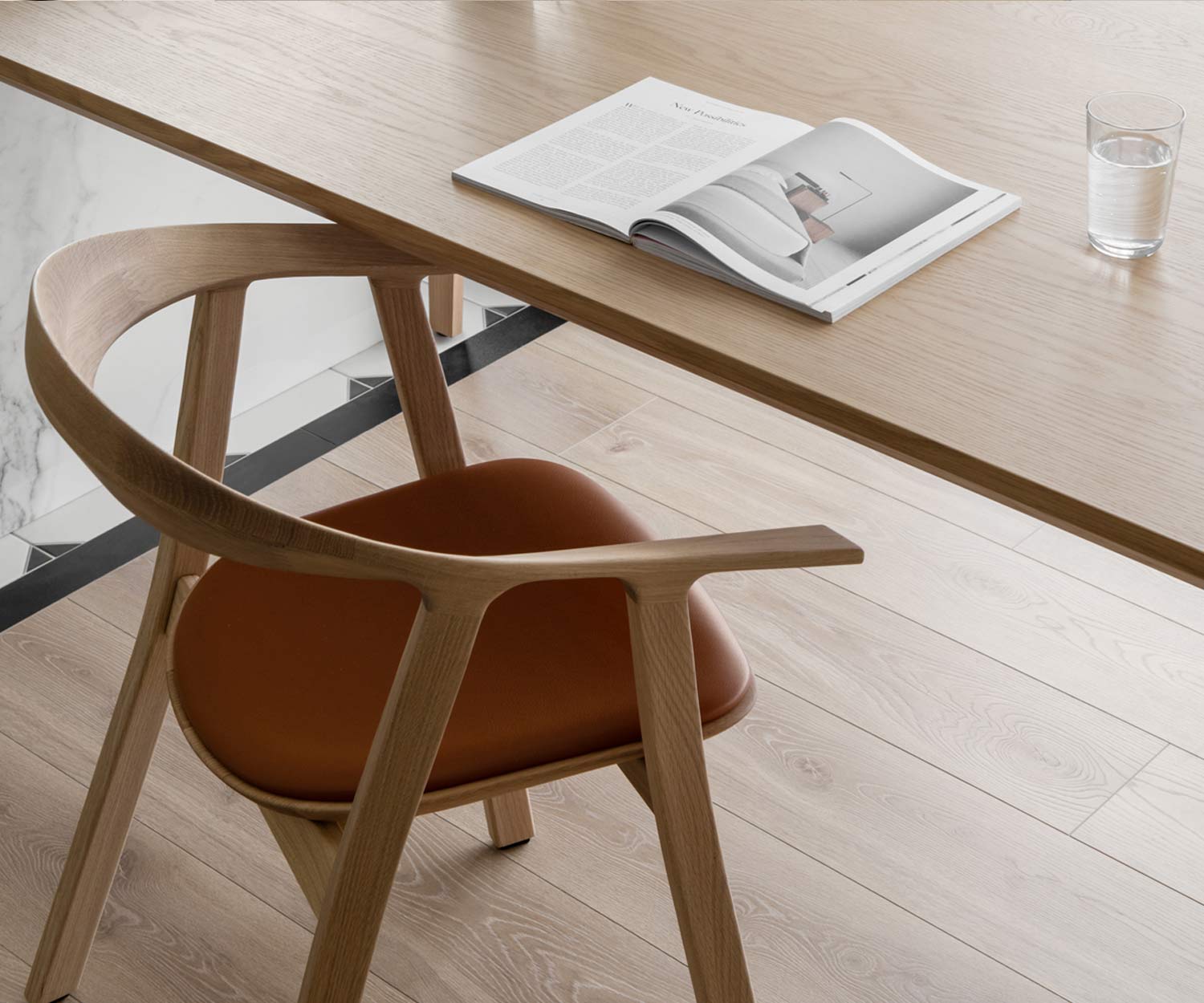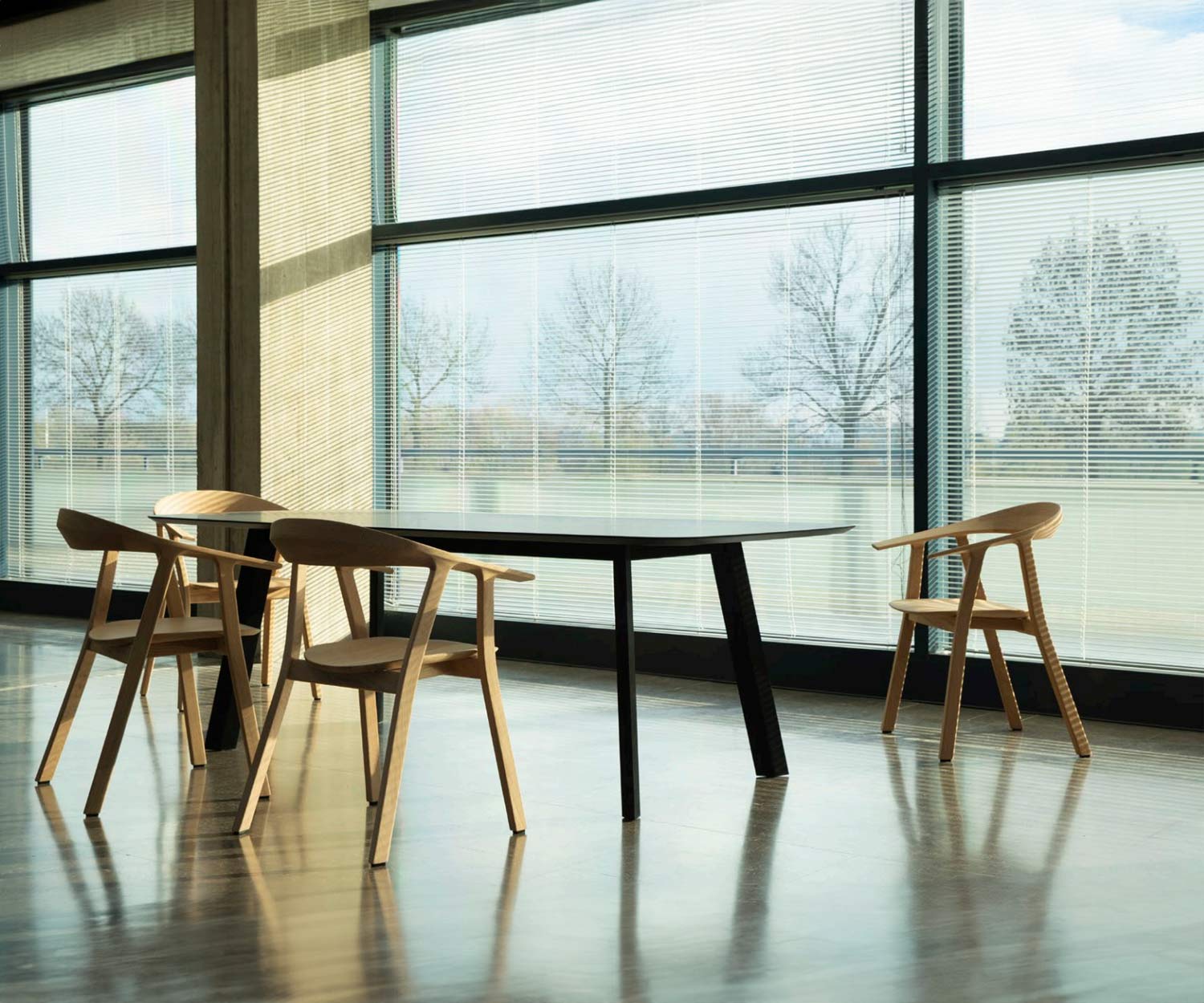 Prostoria Il tavolo da pranzo di alta qualità Rhomb combina un design minimalista con un'eccezionale maestria artigianale. Disegnato da Simon Morasi Piperčić come complemento perfetto della sua iconica sedia, il tavolo si caratterizza per le sue