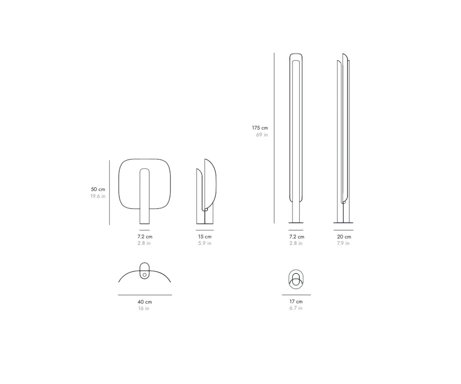 L 17 cm / H 175 cm / P 20 cm | lampada da terra