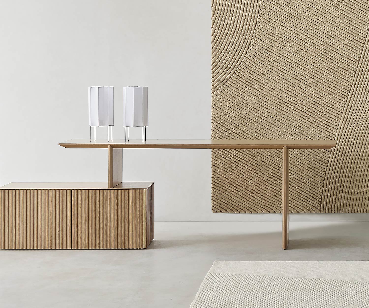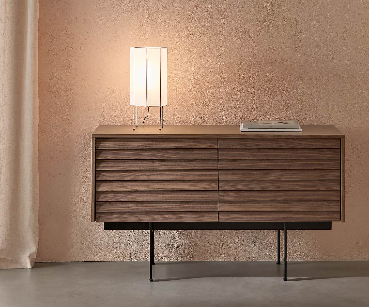 Punt Punt Il design minimalista della lampada da tavolo Velasca rispecchia la nostra collezione Velasca. La collezione si trova sotto la credenza Velasca e la panca Velasca.