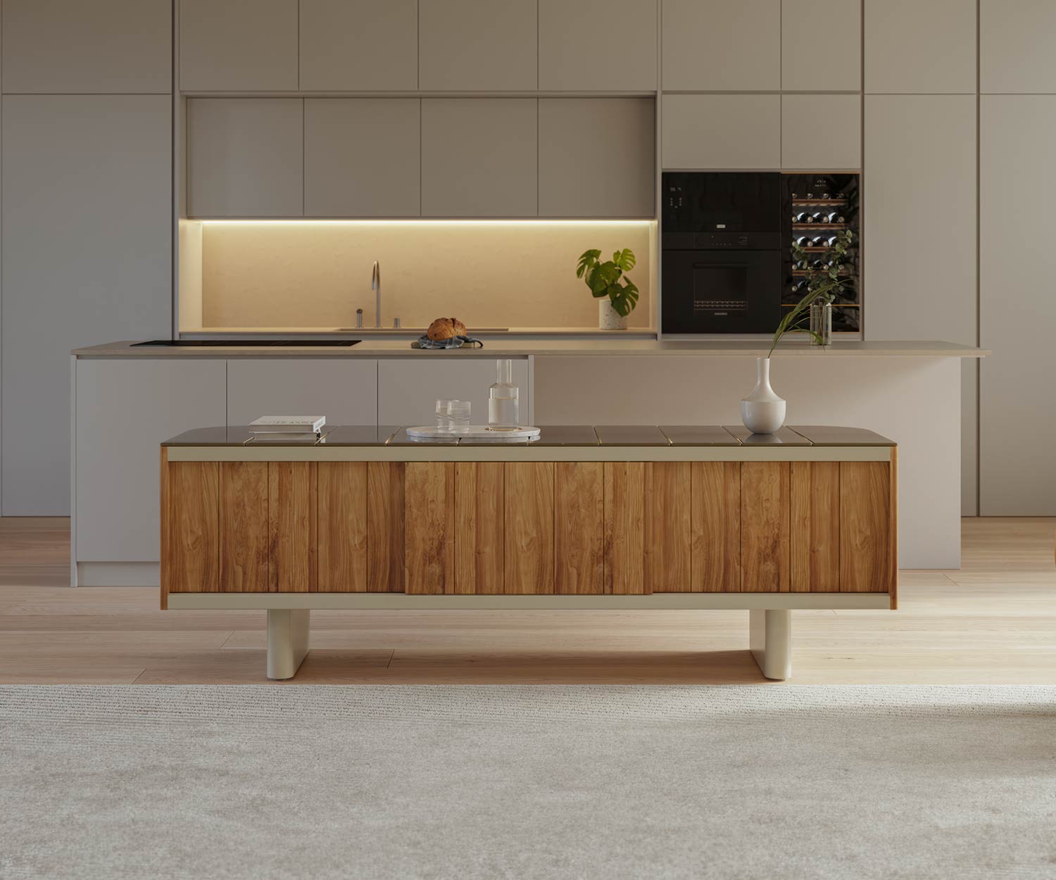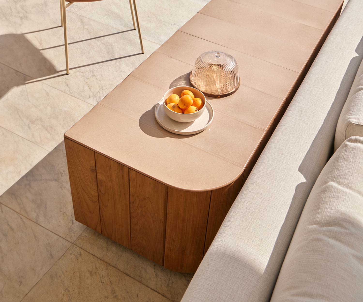 Con i suoi nuovi materiali - la combinazione di ceramica di alta qualità e teak - la credenza per esterni Atrio offre