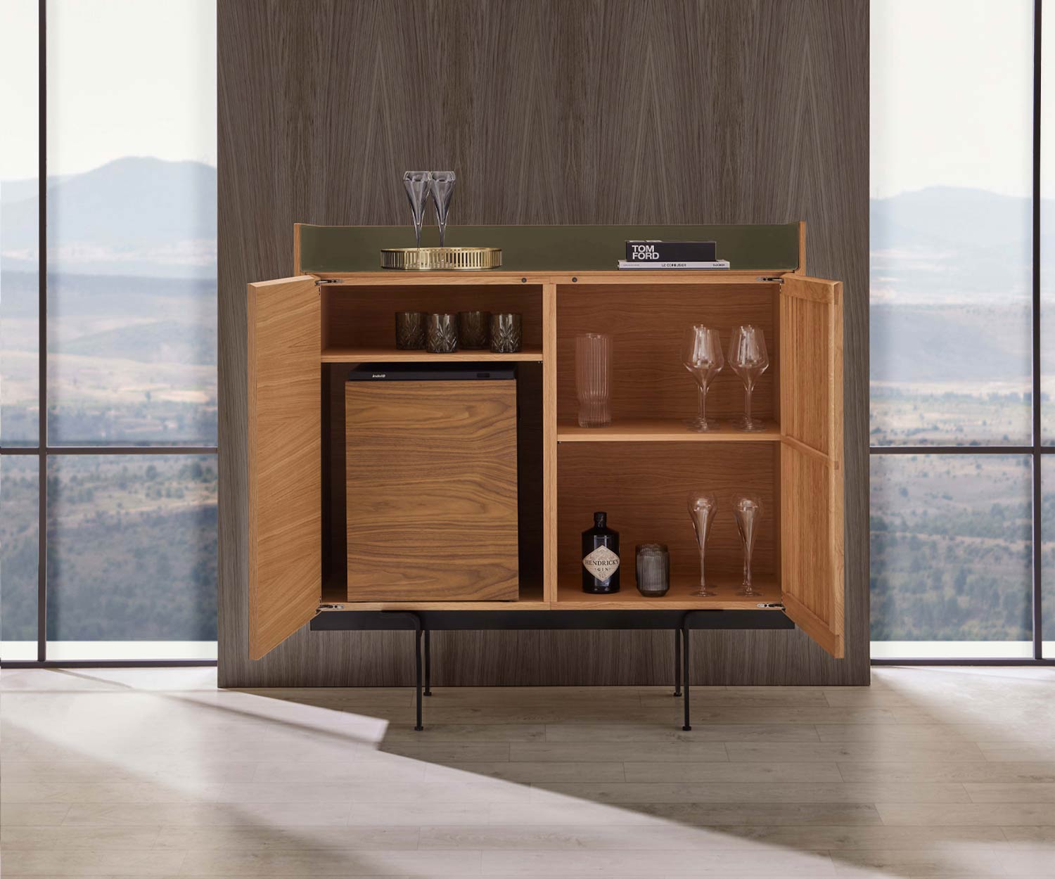 In sala da pranzo o in soggiorno, questa credenza di design Punt Stockholm HiFi illuminerà qualsiasi casa moderna con la sua anta destra a doghe in stile fisarmonica. La finitura in alluminio del pannello superiore, particolarmente sottile, fa brillare gli occhi di chi guarda. E gli appassionati di stereo possono contare su uno sportello in cui nascondere abilmente i fastidiosi cavi dei loro dispositivi AV alla vista dei visitatori.