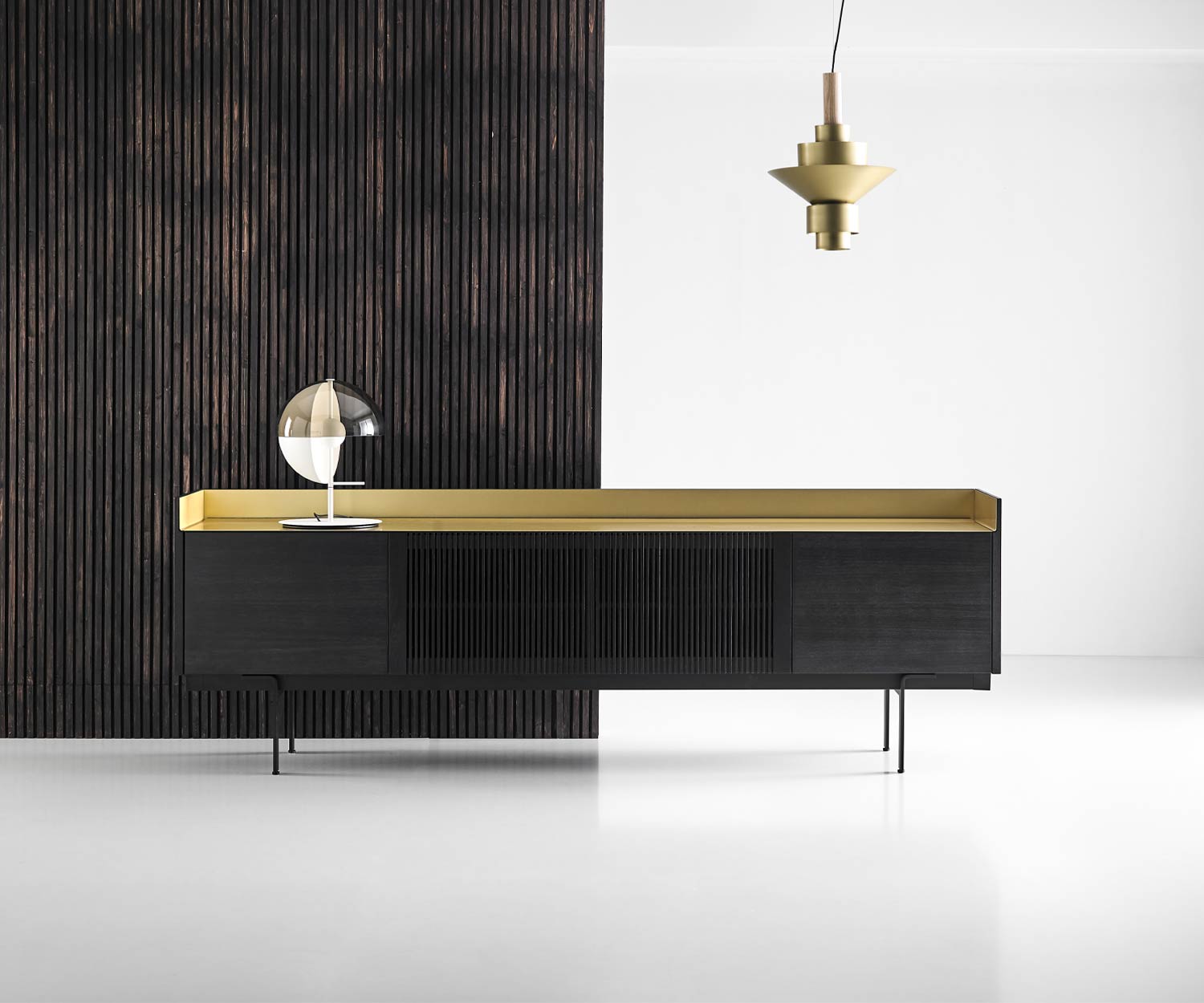 Il mobile basso di design Stockholm TV di Punt è un pezzo unico e inconfondibile. Per questo motivo è già stato premiato con l'ambito Red Dot Design Award. Il mobile basso di design colpisce per la sua sottile piastra superiore in alluminio e i bordi rialzati creano uno straordinario gioco di luci sulla superficie. La lastra di copertura, così delicata, è particolarmente preziosa per la sua sensazione di freddezza e dà all'osservatore una buona impressione dell'artigianalità del mobile. Ogni credenza Stockholm TV è realizzata su ordinazione in Spagna.