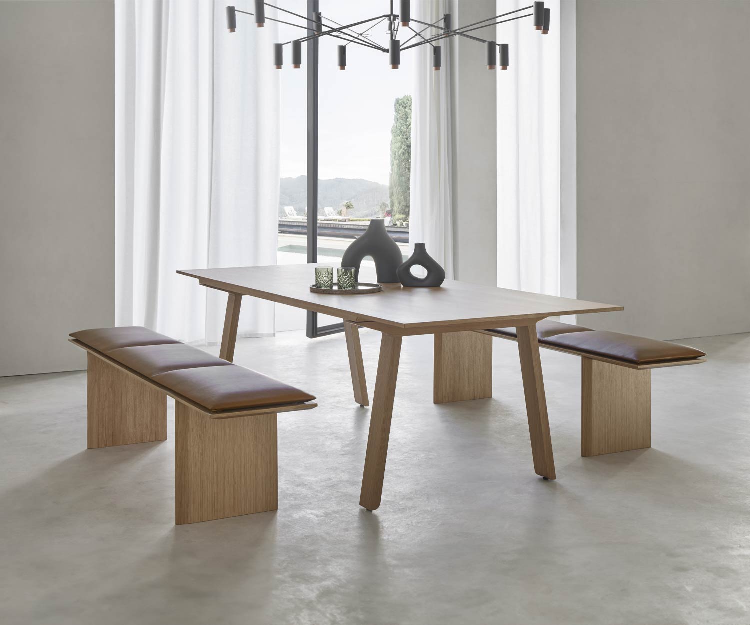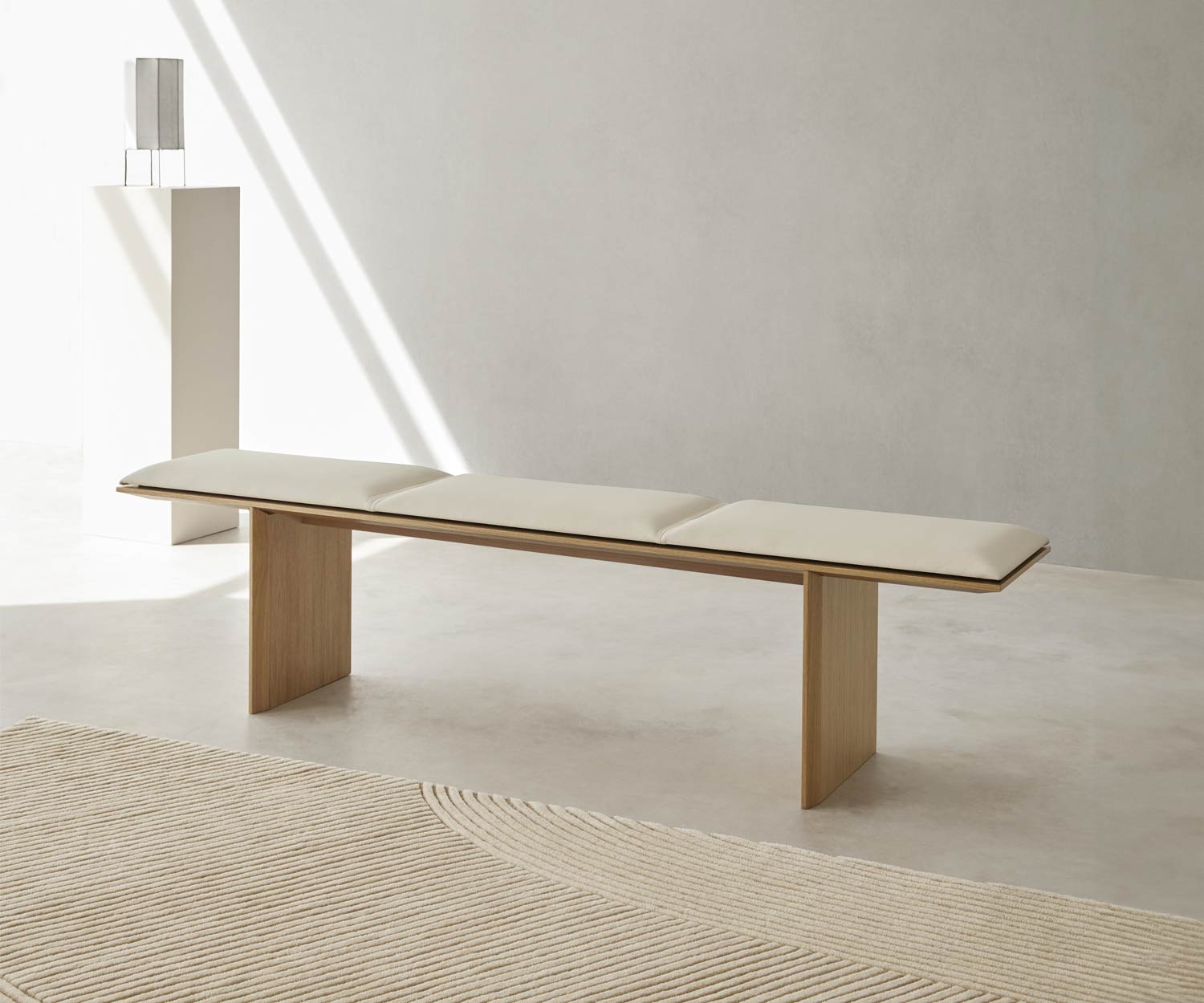 La panchina Punt Velasca, progettata da Ludovica + Roberto Palomba per Punt Mobles, è un esempio di architettura minimalista, arricchita da elementi caldi. Il design si caratterizza per la sua Il design si caratterizza per la sua forma lineare e architettonica, con il legno come protagonista. L'abbinamento con la pelle non solo crea un contrasto visivamente accattivante contrasto visivamente accattivante, ma promette anche longevità e resistenza. Questo Questo pezzo di design crea un fascino estetico che lo fa apparire quasi scultoreo.