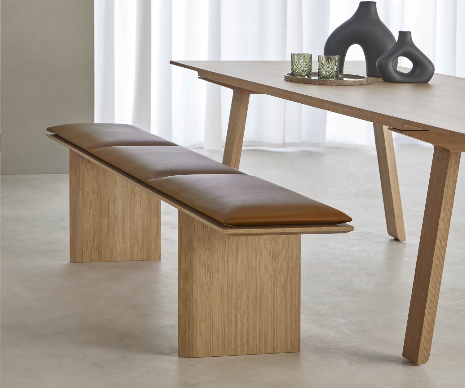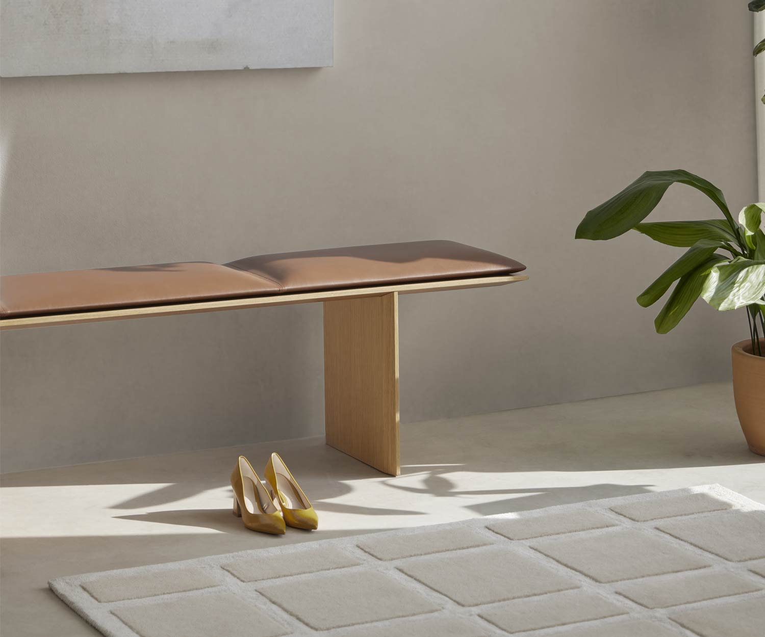 La panca Punt Velasca è disponibile in una gamma di colori colori che si adattano perfettamente a qualsiasi stile di interni. Scegliete tra diversi colori di legno Rovere super opaco o Rovere tinto nero per dare alla vostra panca un carattere individuale. panchina un carattere individuale, dai toni naturali agli accenti moderni. ad accenti moderni. I colori dei rivestimenti in pelle sono disponibili nei colori Castagna Marrone, Grigio chiaro cenere o Nero.