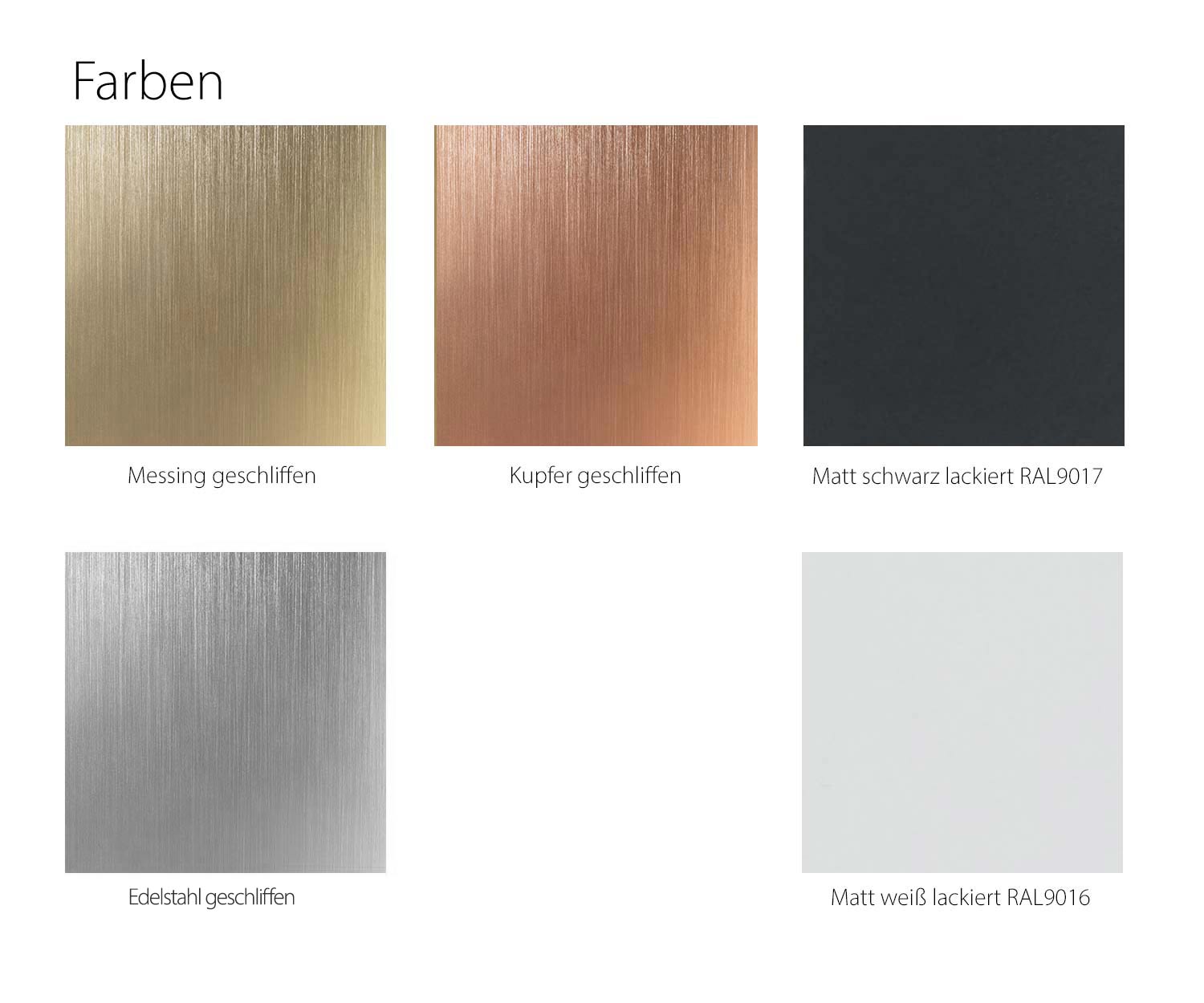 La struttura e il vassoio del tavolino standard M5 sono disponibili in nero opaco RAL 9017 e bianco opaco RAL 9016. La versione Splus M5 Edition ha una cornice in minerale di ferro micaceo grigio nero (come illustrato) Le scocche dei modelli M5 Edition (attenzione: solo per i modelli rotondi) sono disponibili in rame o ottone lucido, oltre che in alluminio anodizzato argento.