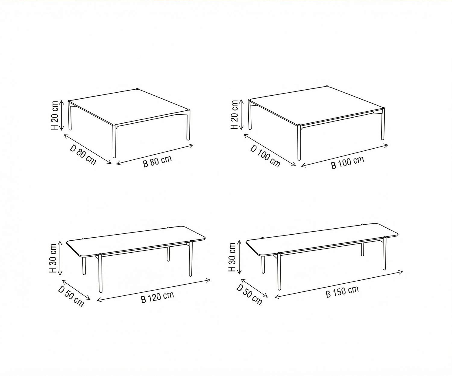 Der Todus Dongo Outdoor Couchtisch ist in folgenden Maßen erhältlich: