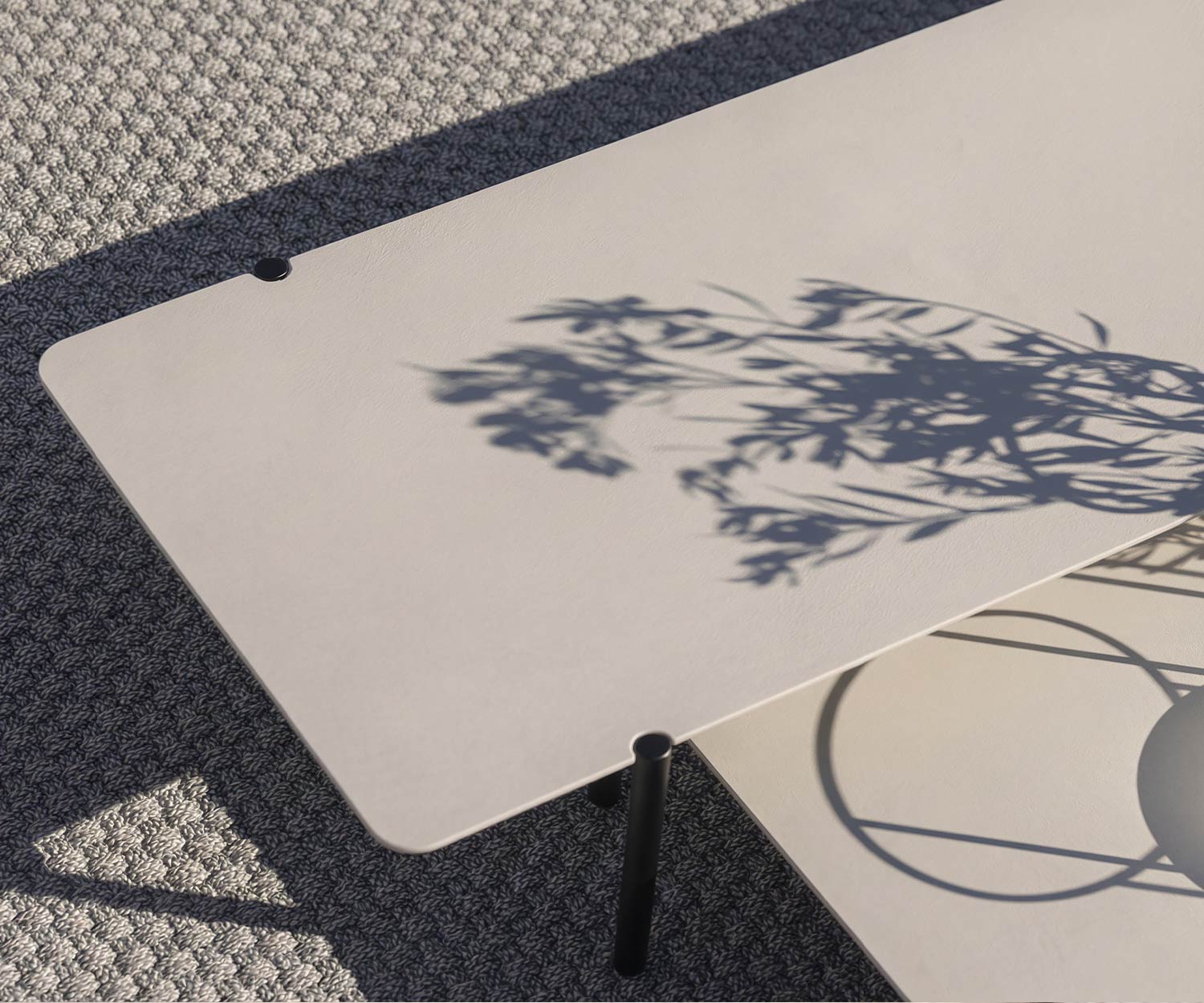 Raffiniertes Design für Ihre Lounge: Die Outdoor-Couchtische lassen sich als stilvolles Ensemble kombinieren, bei dem die niedrigeren Modelle elegant und platzsparend unter den höheren Tisch geschoben werden können.